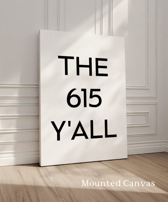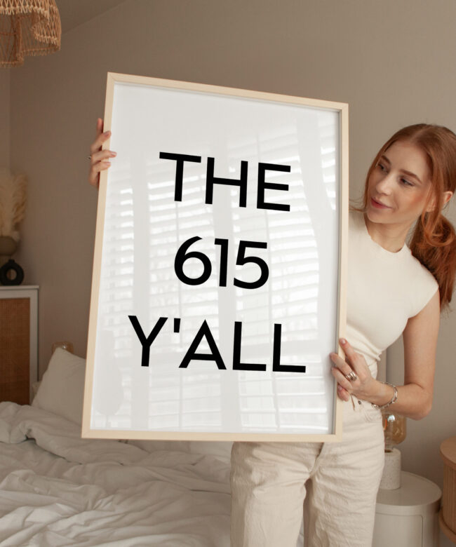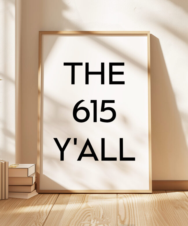 Celebrate Music City with this bold and fun typography art print that proudly displays “THE 615 Y’ALL.” As the original area code for Nashville, this print captures the heart and soul of the city in a minimalist, modern design. Perfect for any Nashville native or anyone who loves the vibe of this iconic city, this print is a stylish and playful addition to your home decor.