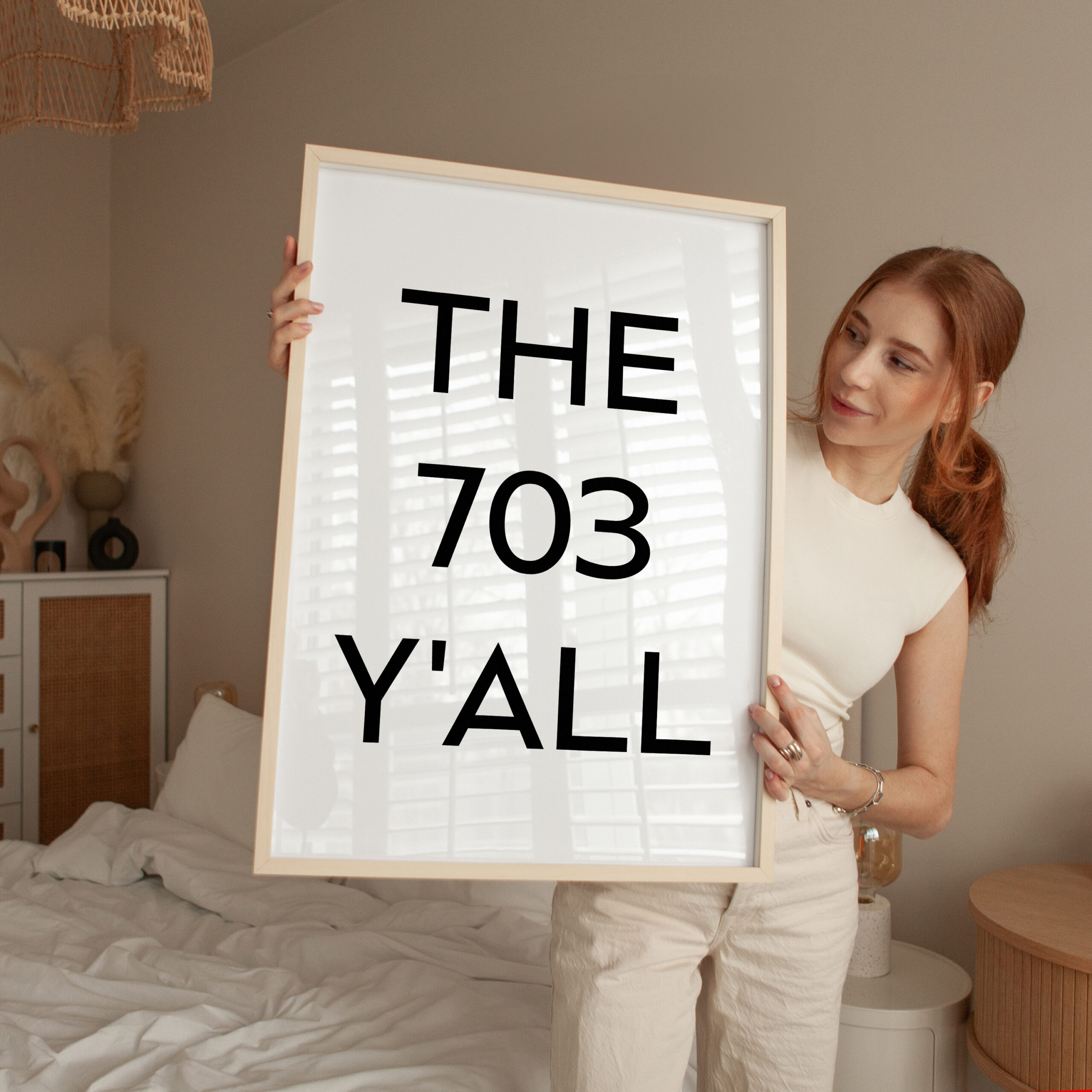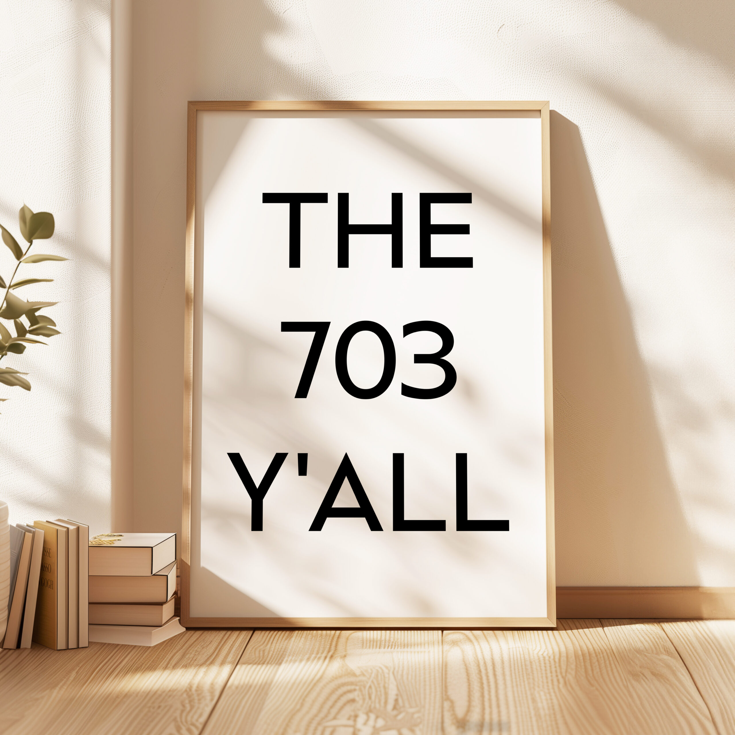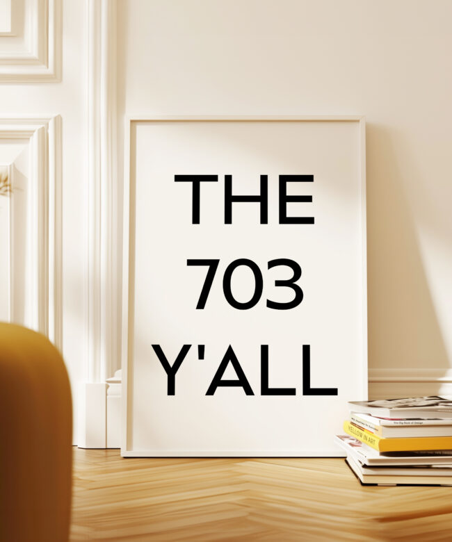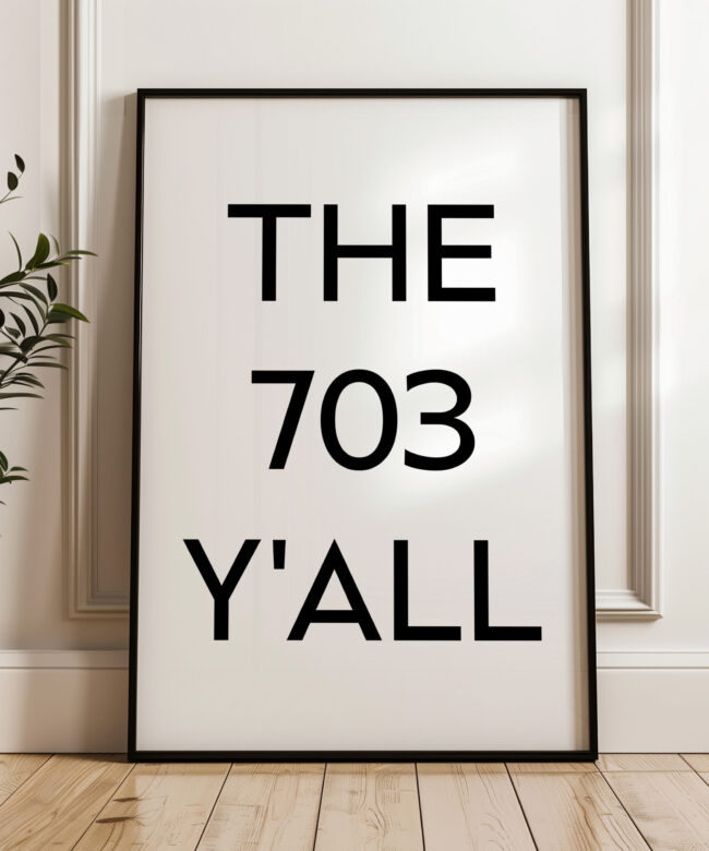 This “THE 703 Y’ALL” art print is the perfect nod to the 703 area code with a dash of Southern flair. It makes a great gift for friends and family in Virginia, or a stylish way to show off your hometown love. Whether framed on a wall or propped on a shelf, it adds personality and regional pride to any room.