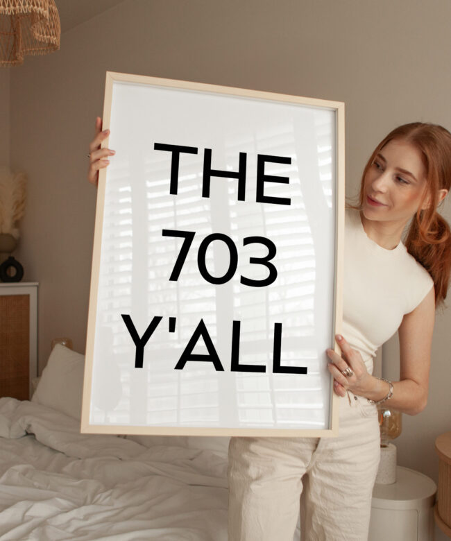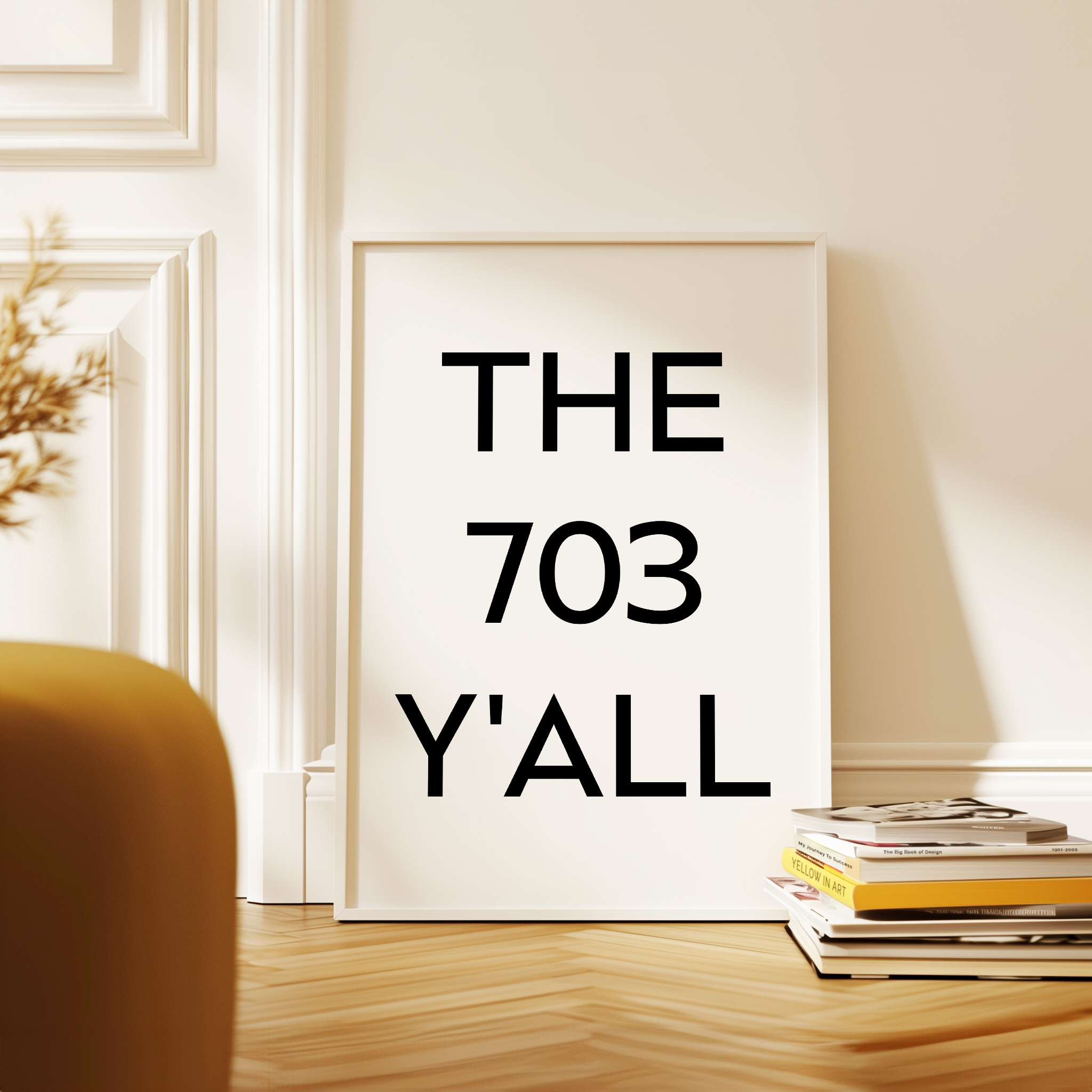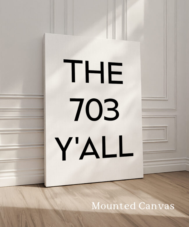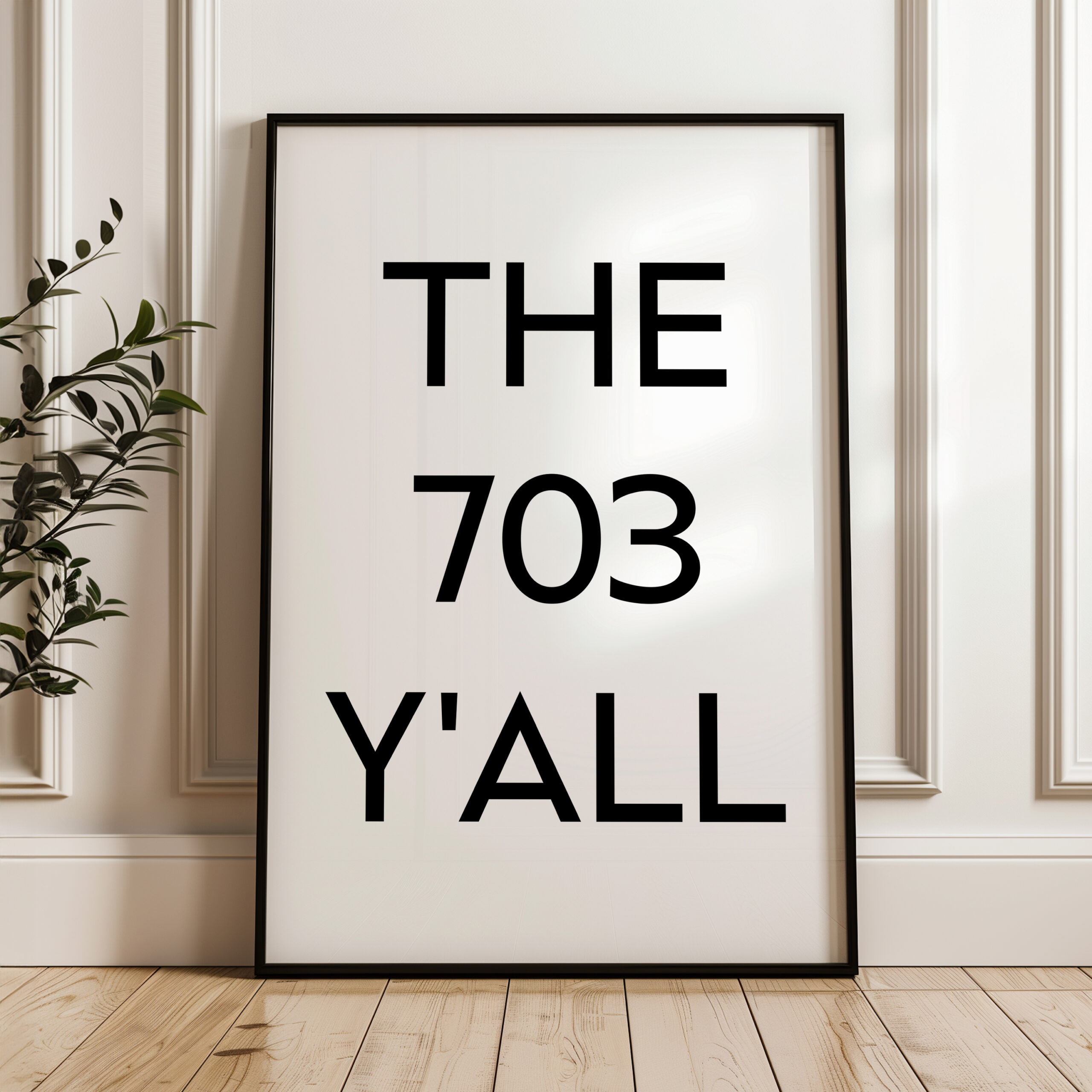 This “THE 703 Y’ALL” art print is the perfect nod to the 703 area code with a dash of Southern flair. It makes a great gift for friends and family in Virginia, or a stylish way to show off your hometown love. Whether framed on a wall or propped on a shelf, it adds personality and regional pride to any room.