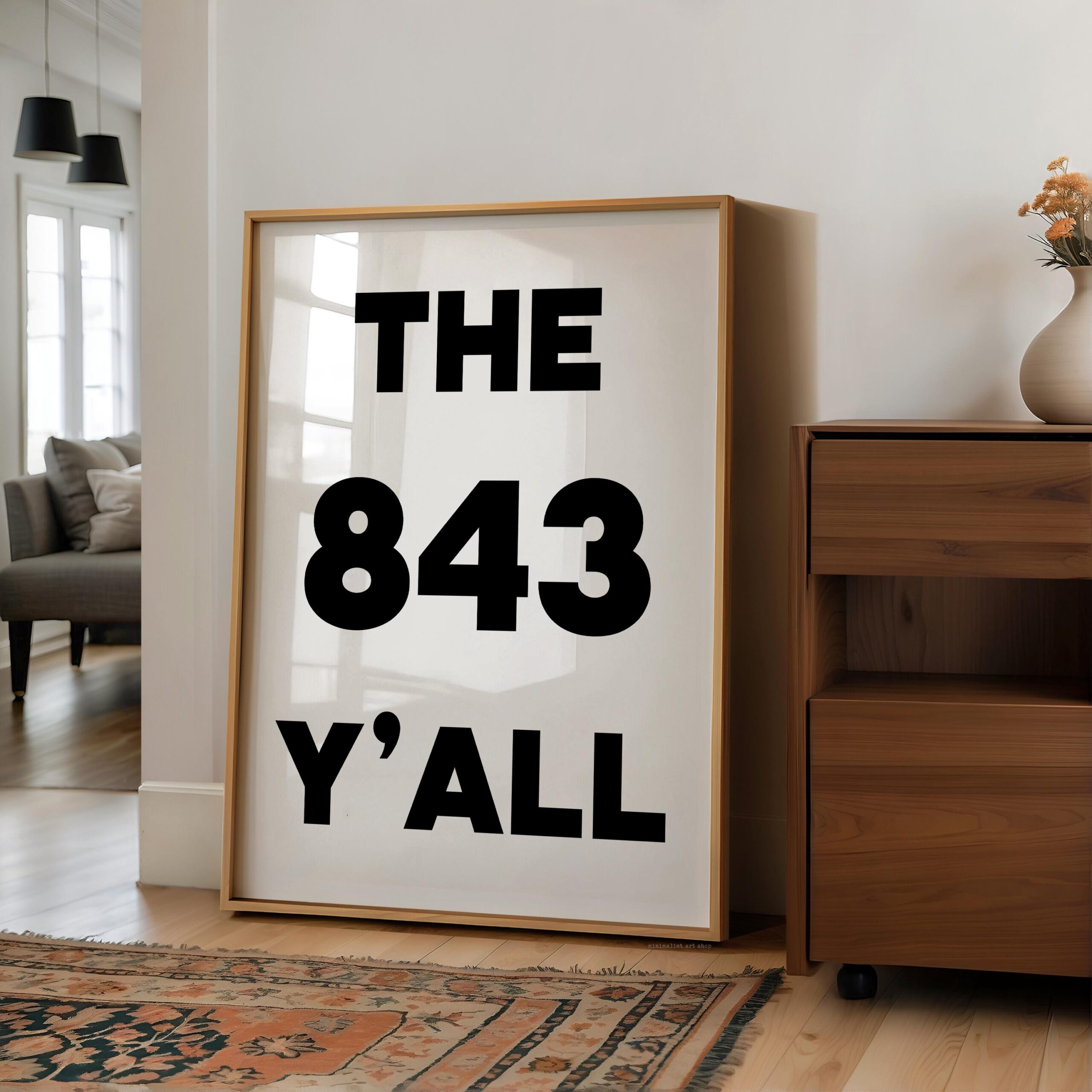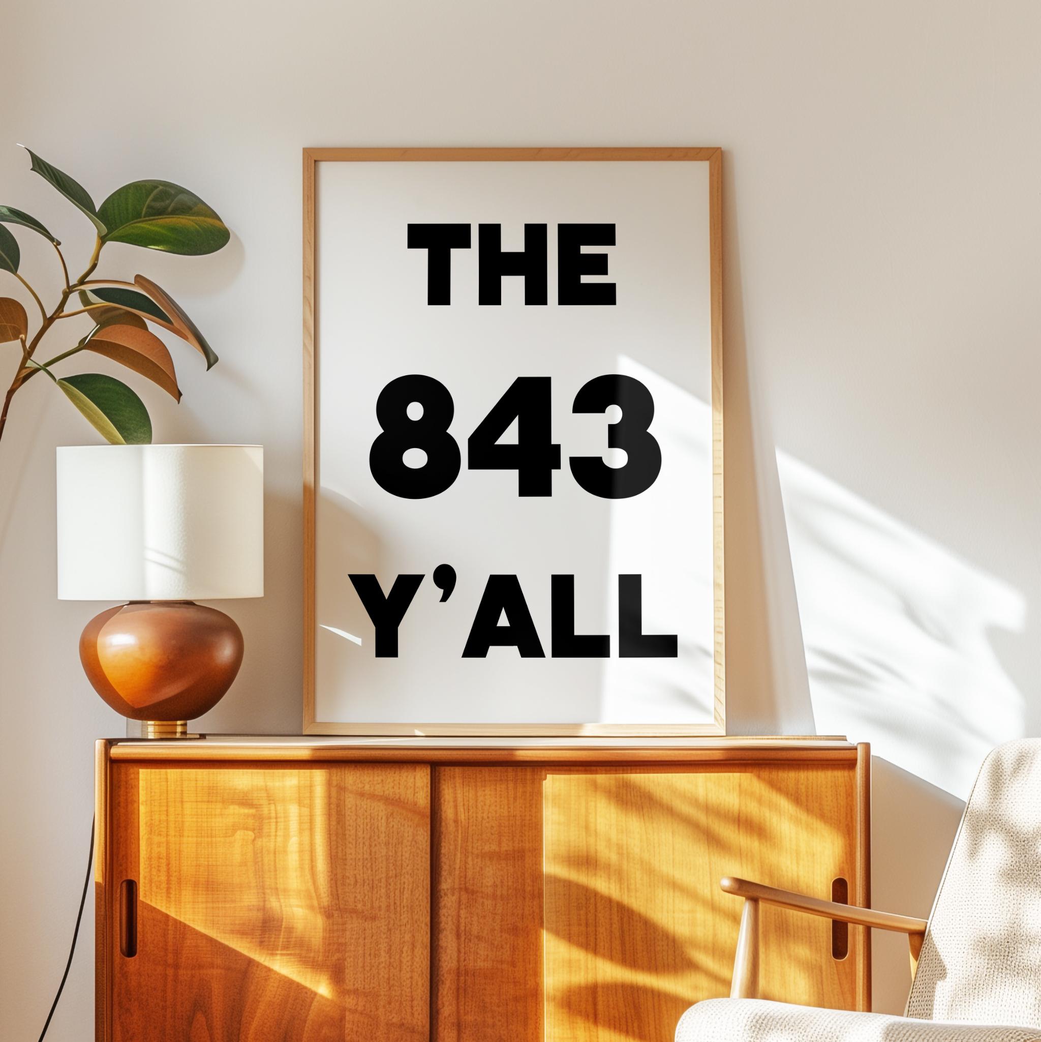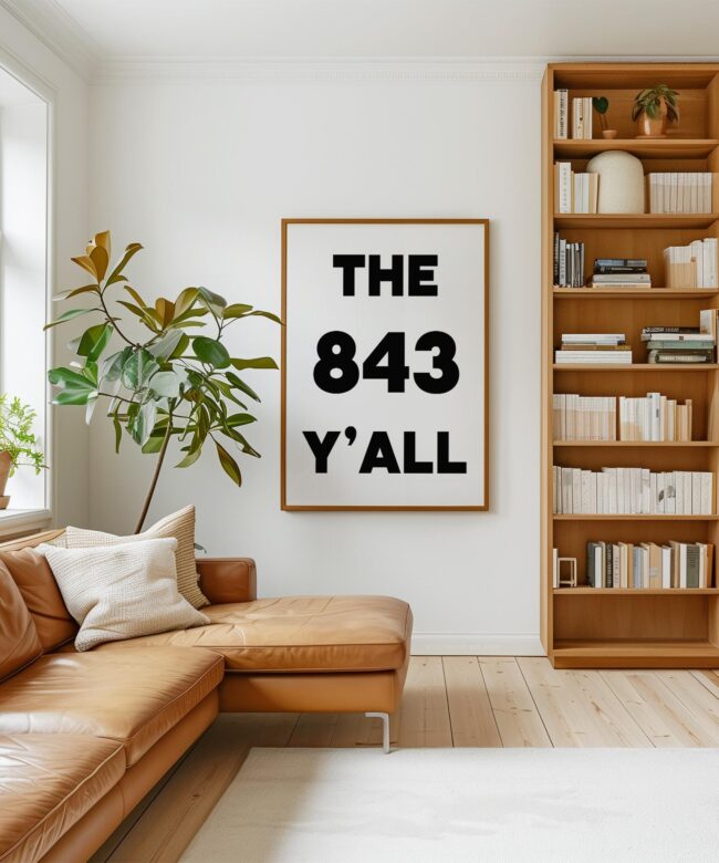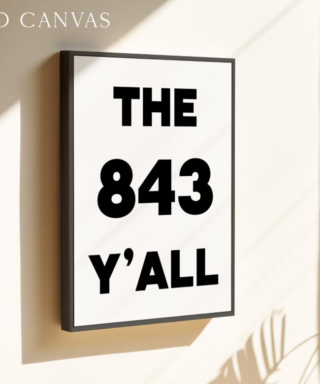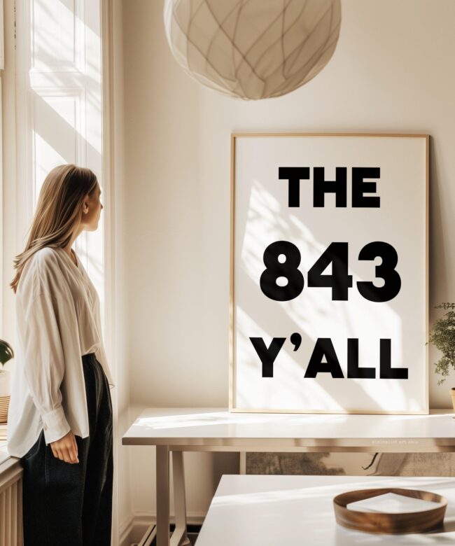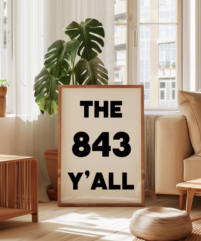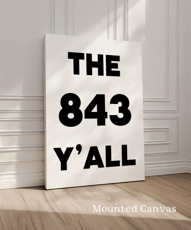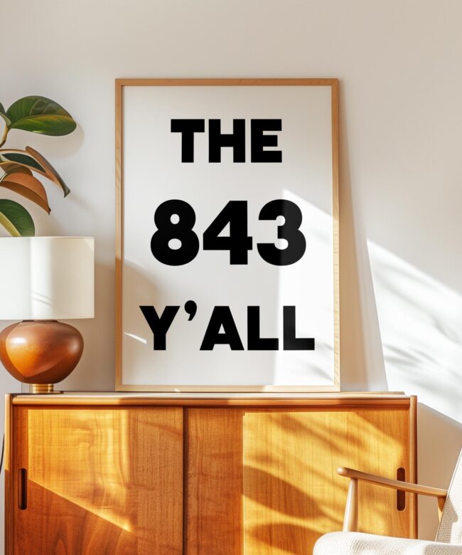 Bring a bold slice of South Carolina to your walls with this high-impact “The 843 Y’ALL” art print. Designed in a clean, minimalist style, this piece captures the charm and pride of Charleston, Myrtle Beach, and the whole Low country. Why It’s a Great Gift: It’s the perfect gift for locals, SC expats, or anyone who loves southern hospitality and sunshine. Housewarming? Check. Going-away party? Nailed it.