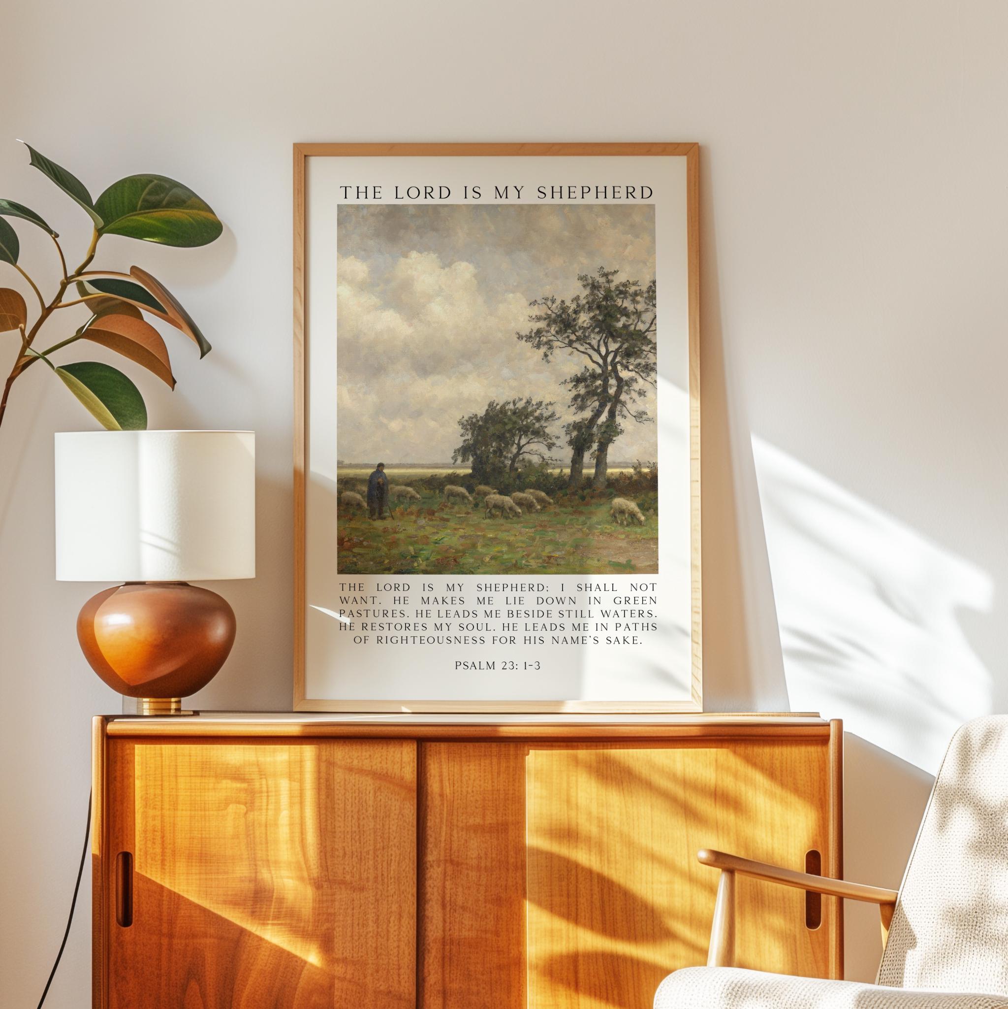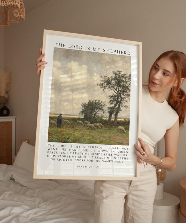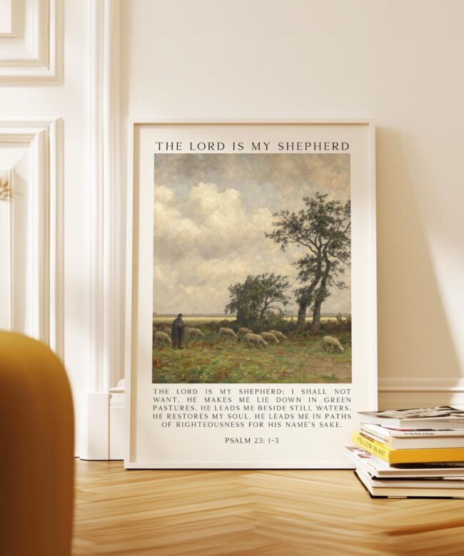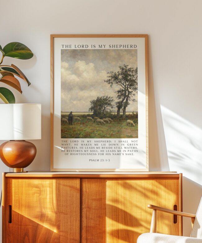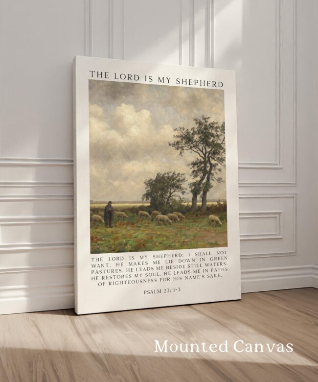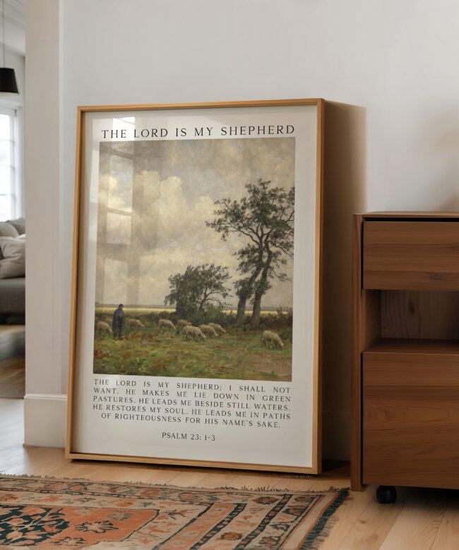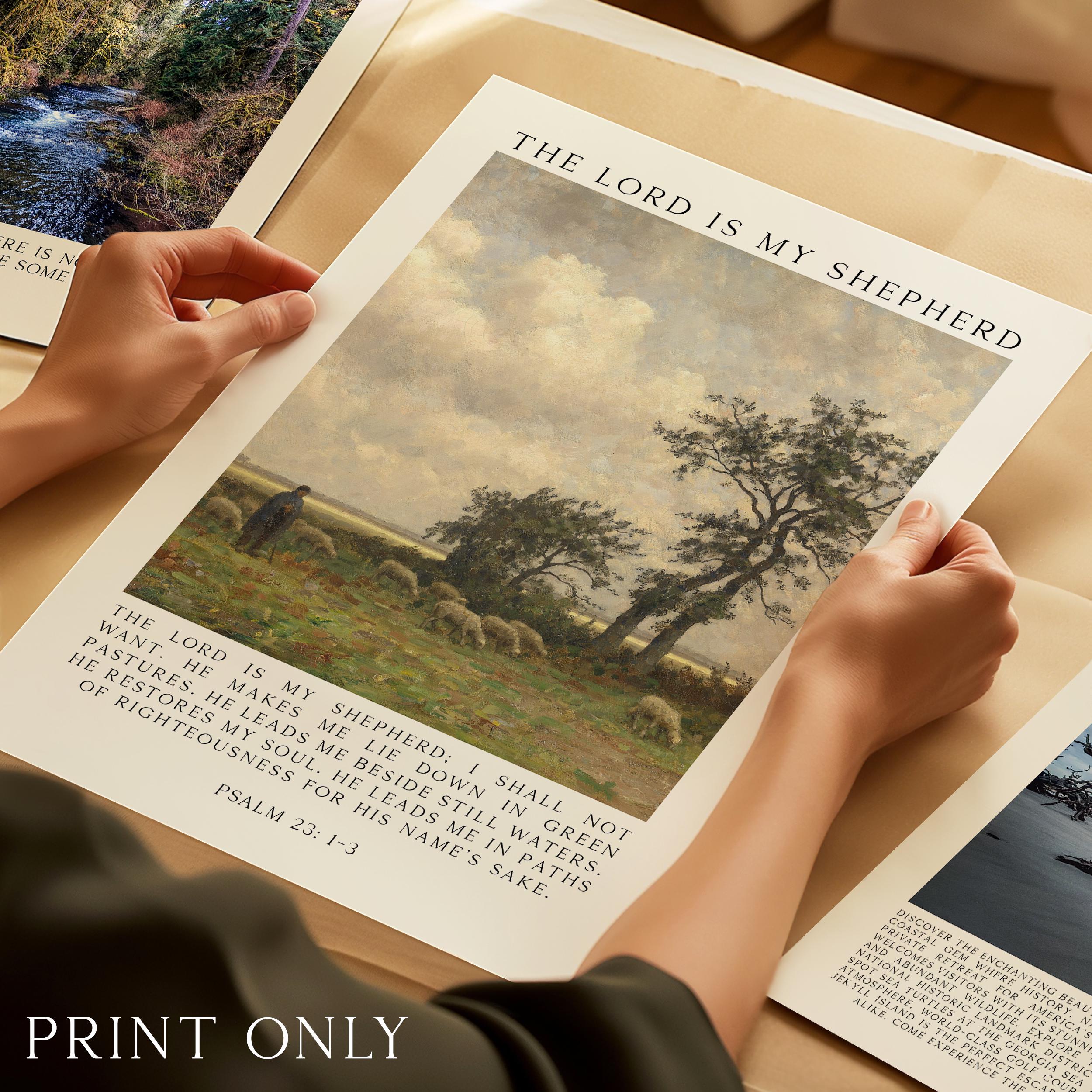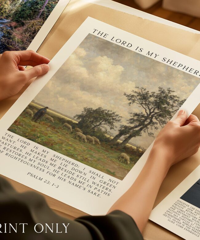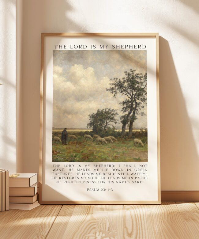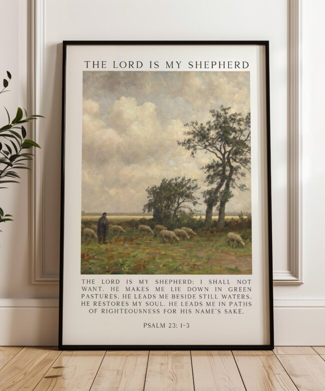 Bring peace and reassurance to your space with this “The Lord Is My Shepherd” Typography Art Print, beautifully paired with the painting, Landscape in Drenthe (1875 – 1910) by Alphonse Stengelin. The timeless words of Psalm 23:1-3 remind us of divine care, restoration, and calm waters for the soul.