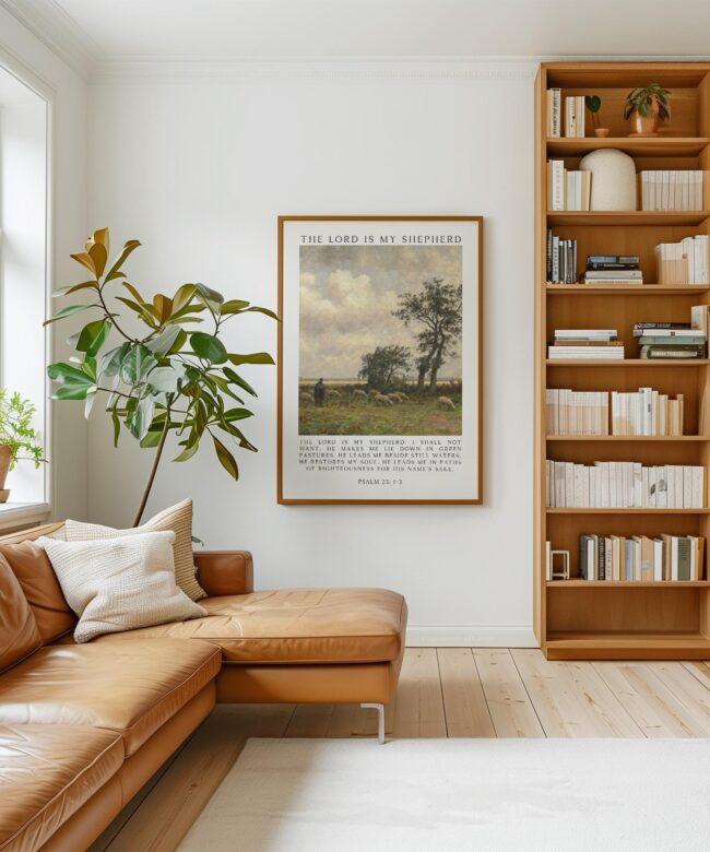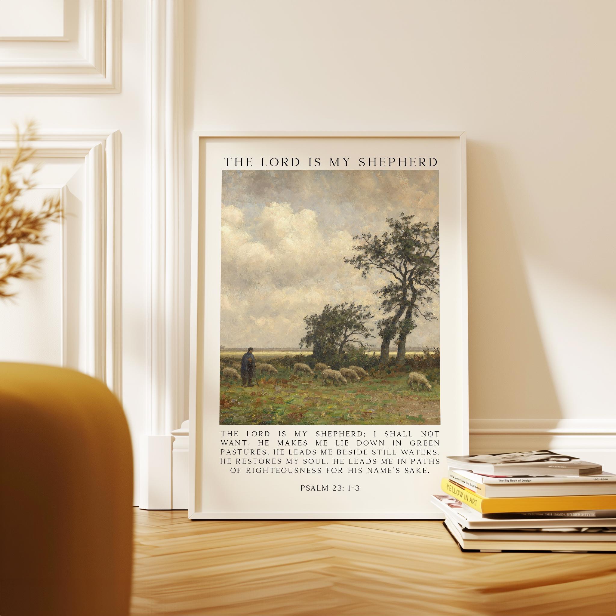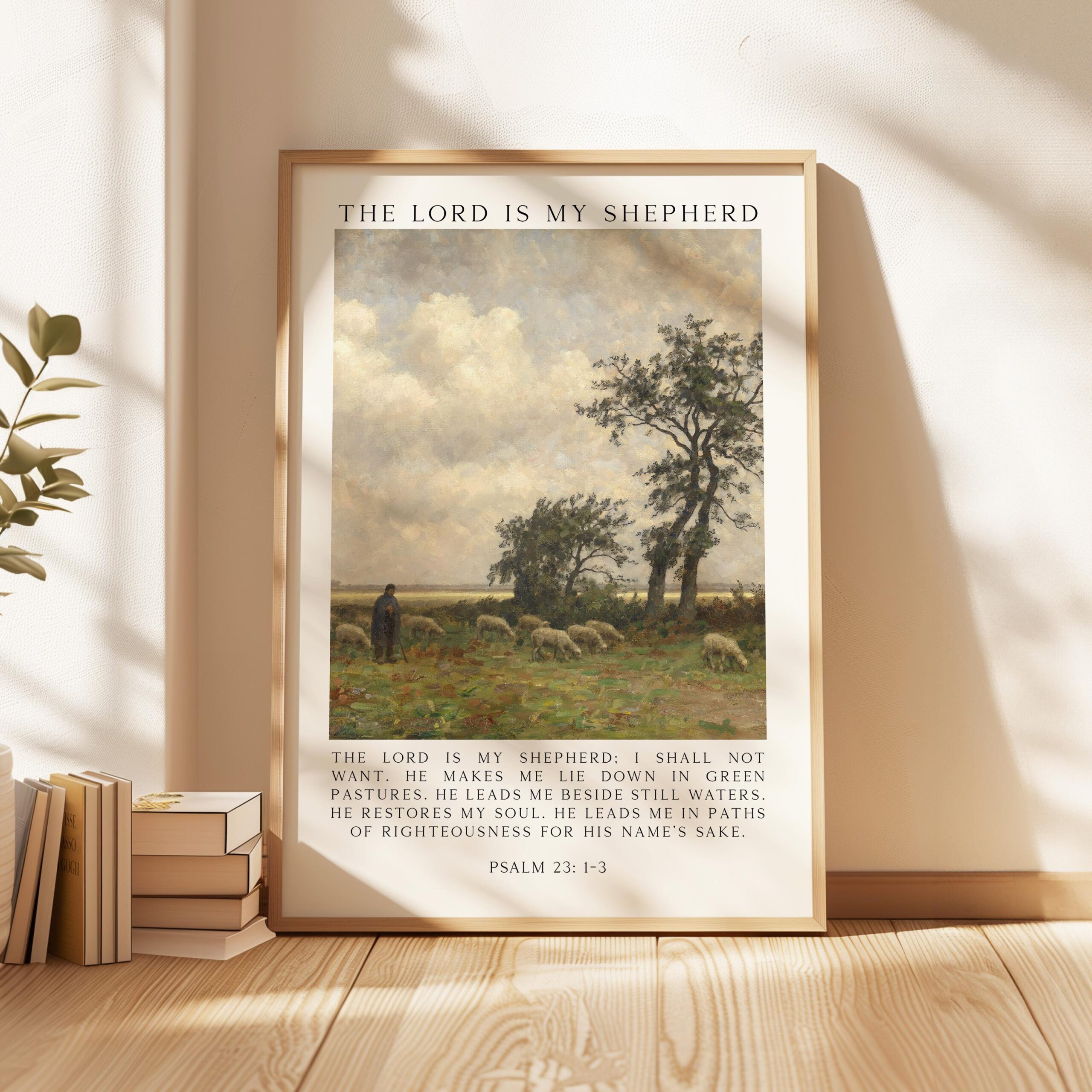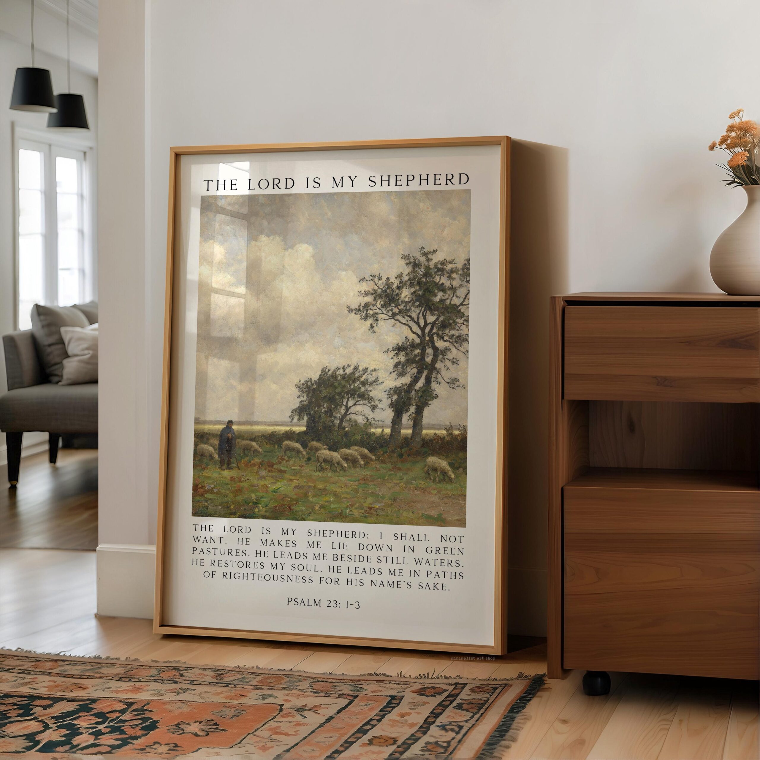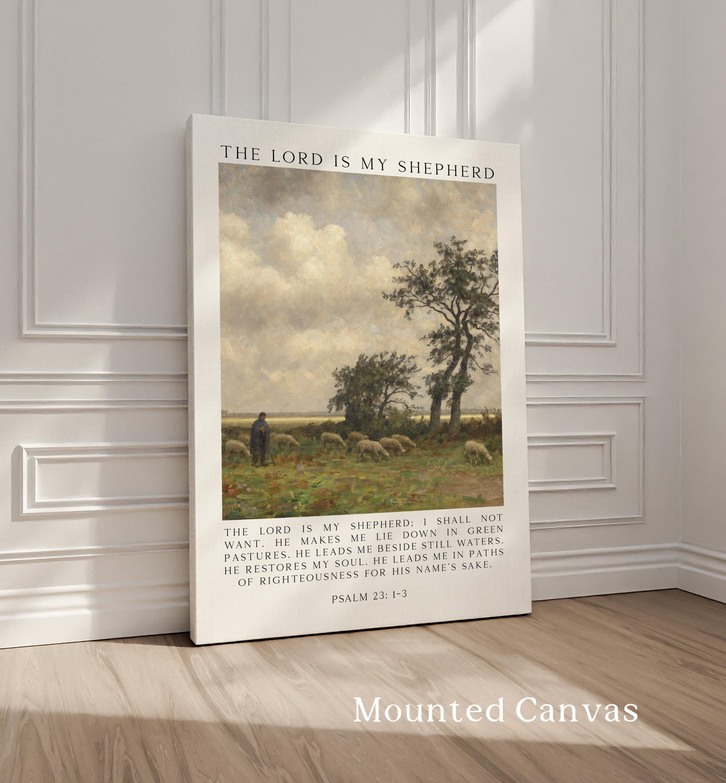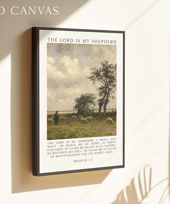 Bring peace and reassurance to your space with this “The Lord Is My Shepherd” Typography Art Print, beautifully paired with the painting, Landscape in Drenthe (1875 – 1910) by Alphonse Stengelin. The timeless words of Psalm 23:1-3 remind us of divine care, restoration, and calm waters for the soul.