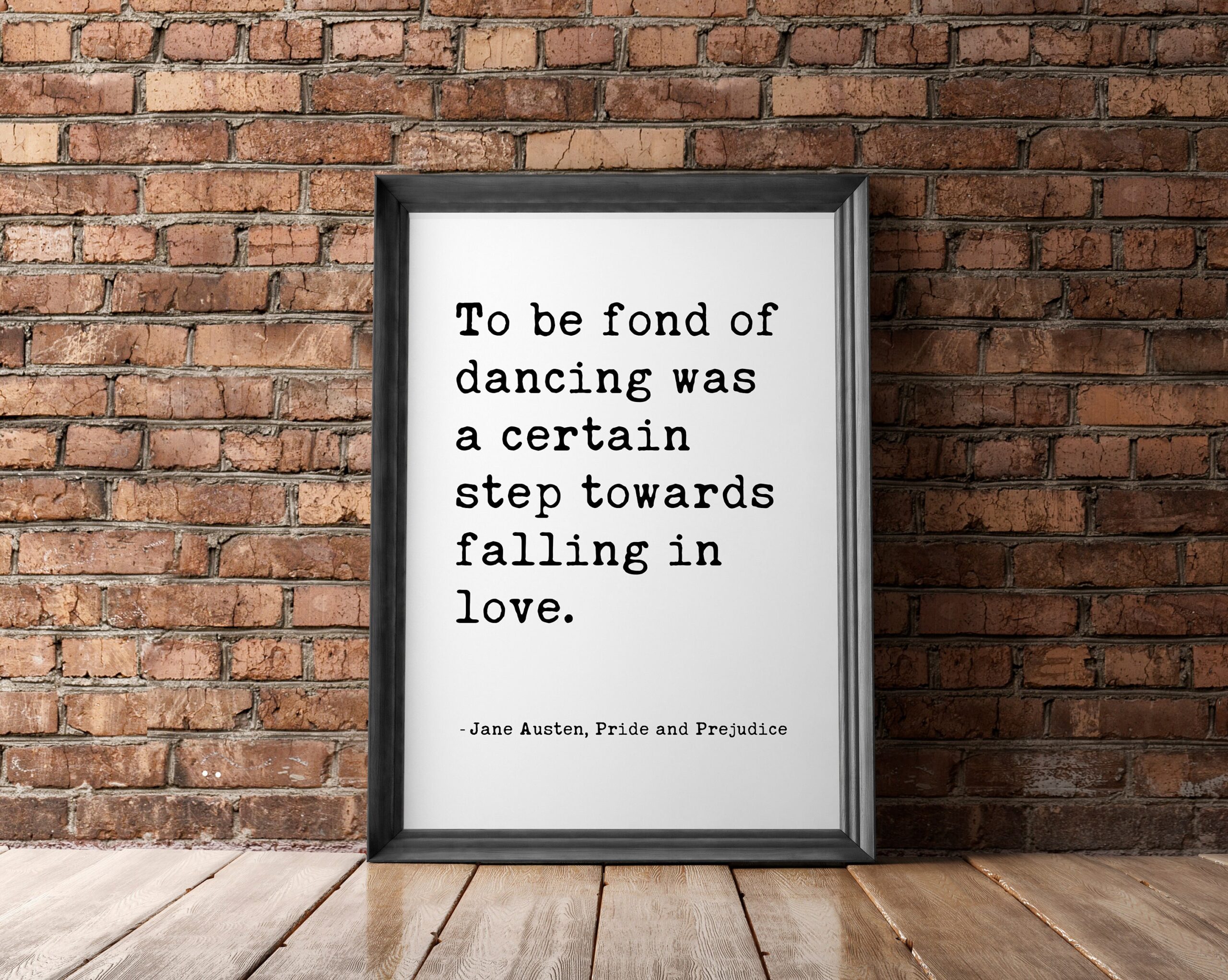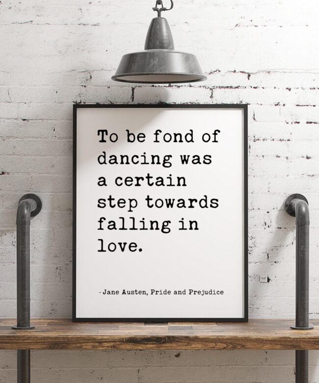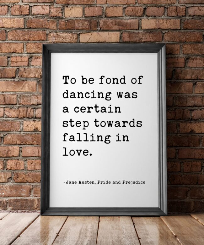 To be fond of dancing was a certain step towards falling in love. – Jane Austen, Pride and Prejudice Typography Print – Book Quotes Decor