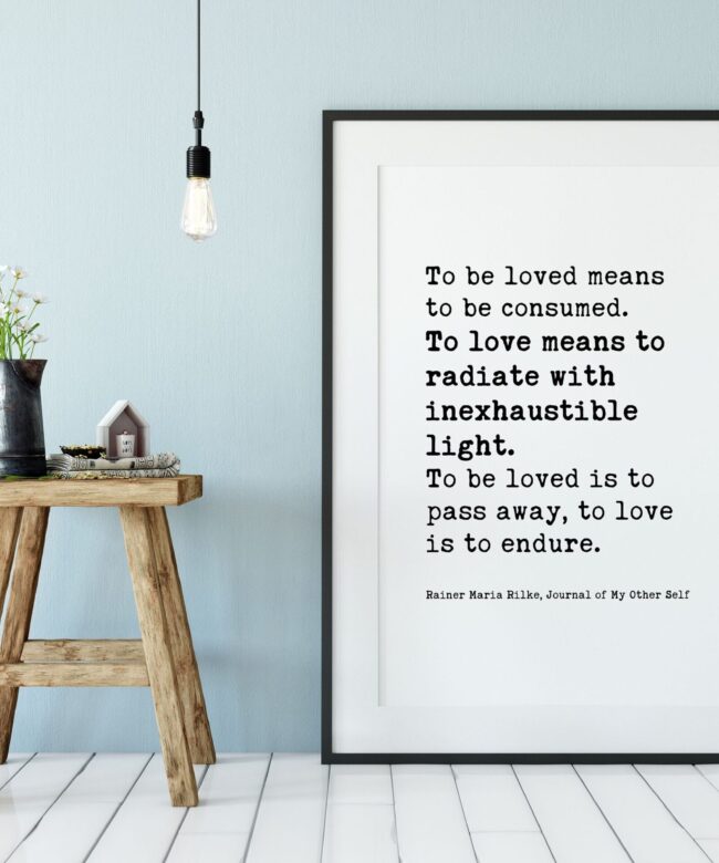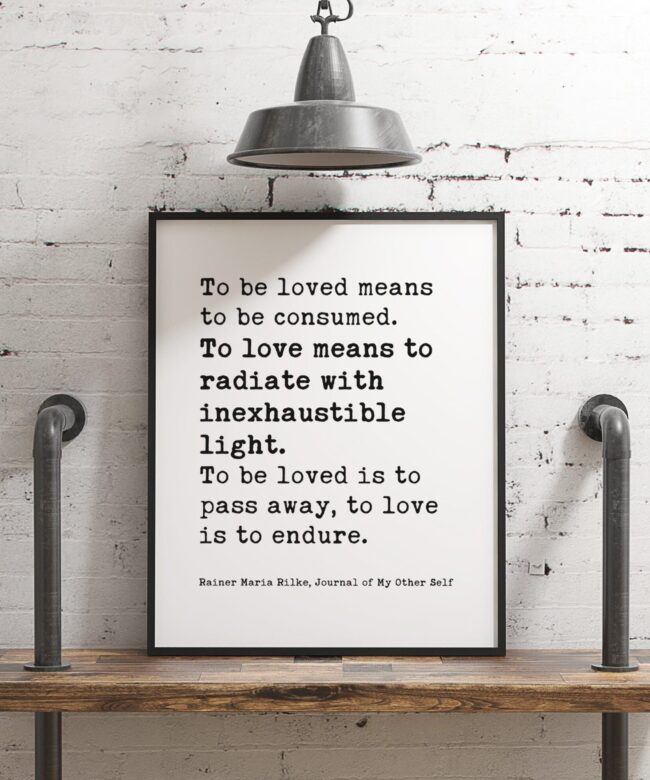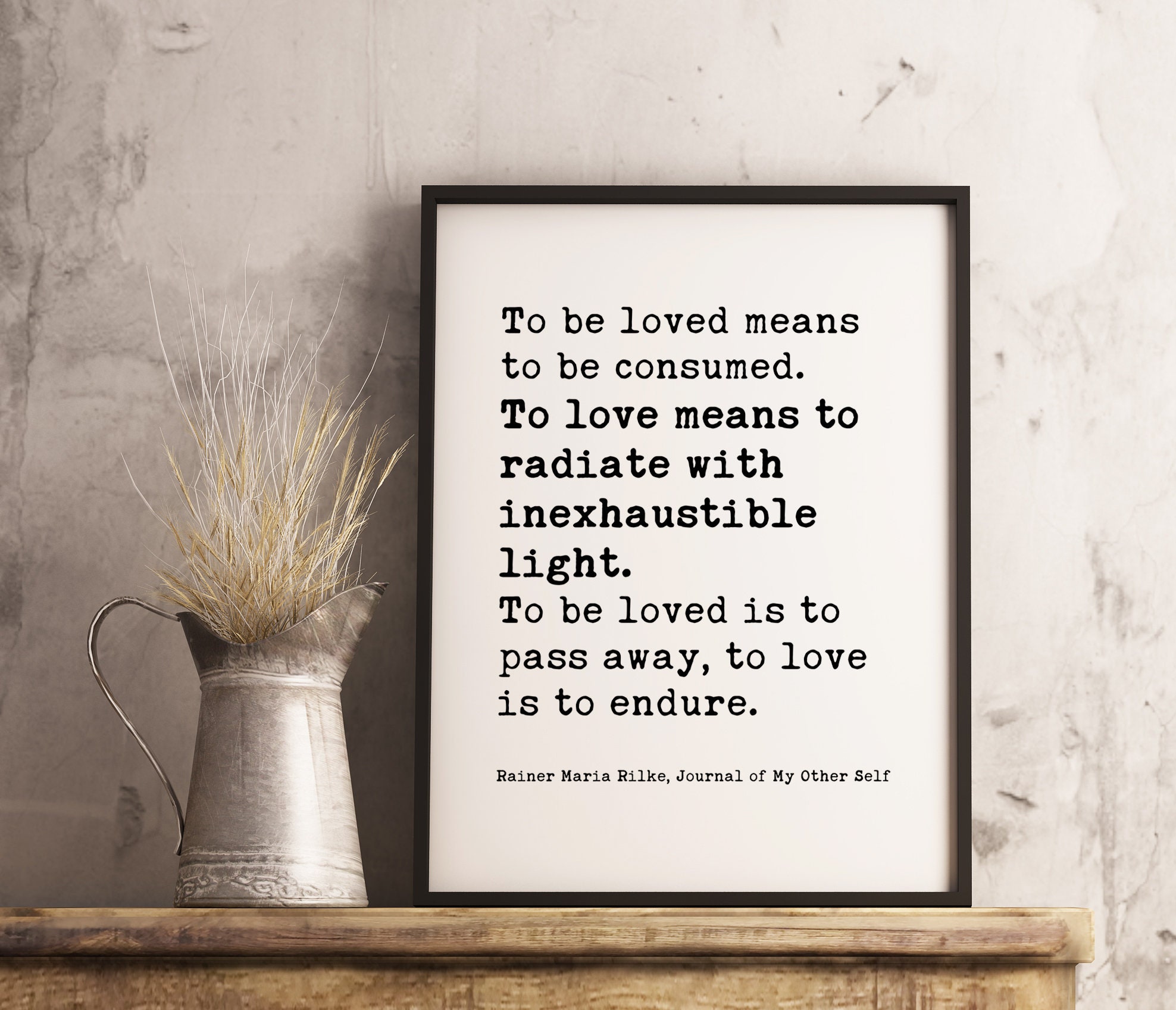 To Be Loved Means to Be Consumed. To Love Means to Radiate with Inexhaustible Light – Rainer Maria Rilke Quote – Typography Print – Wedding