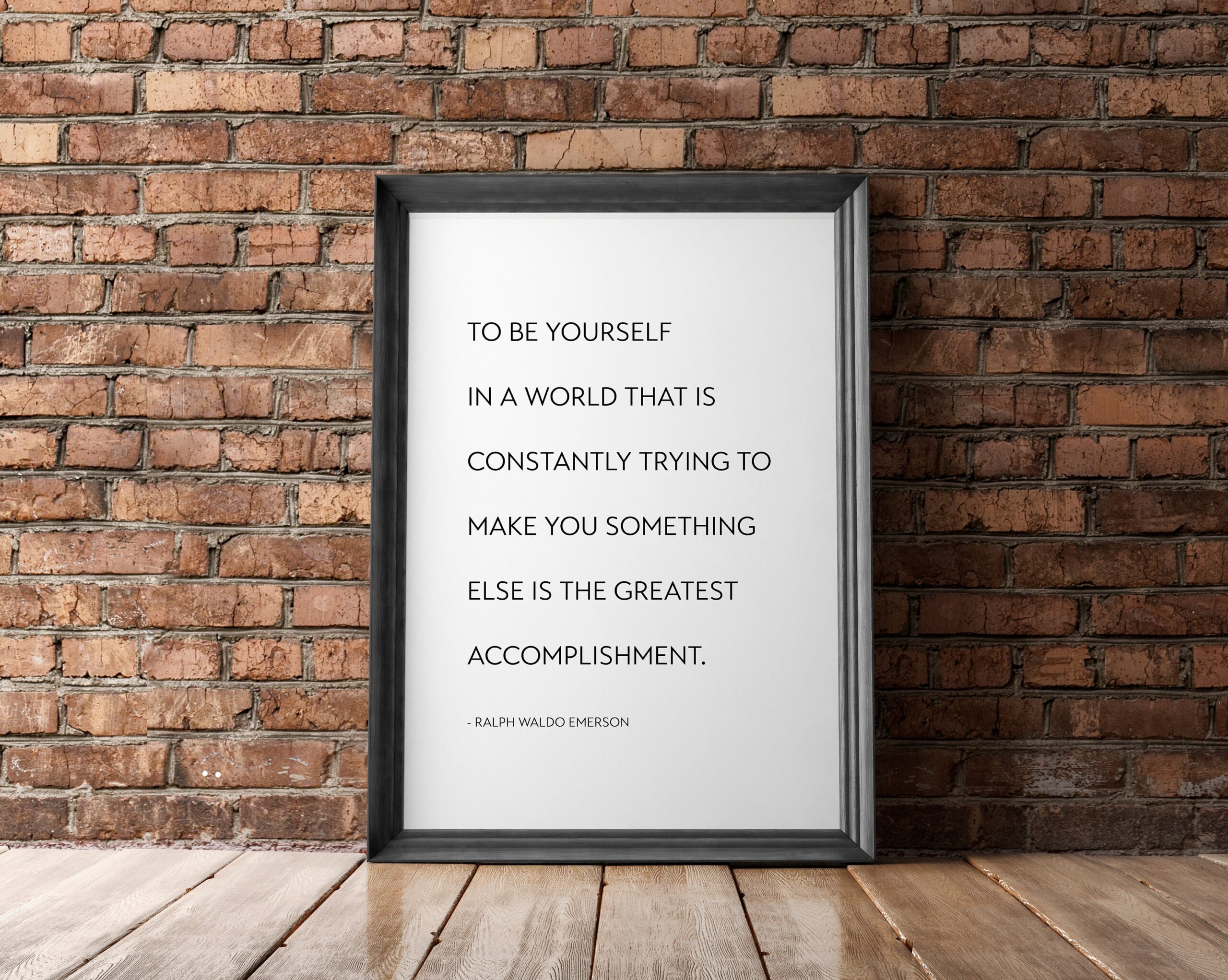 To be yourself …. greatest accomplishment. – Ralph Waldo Emerson – Inspiration Quotes – Entrepreneur Gift – Independence – Typography Art