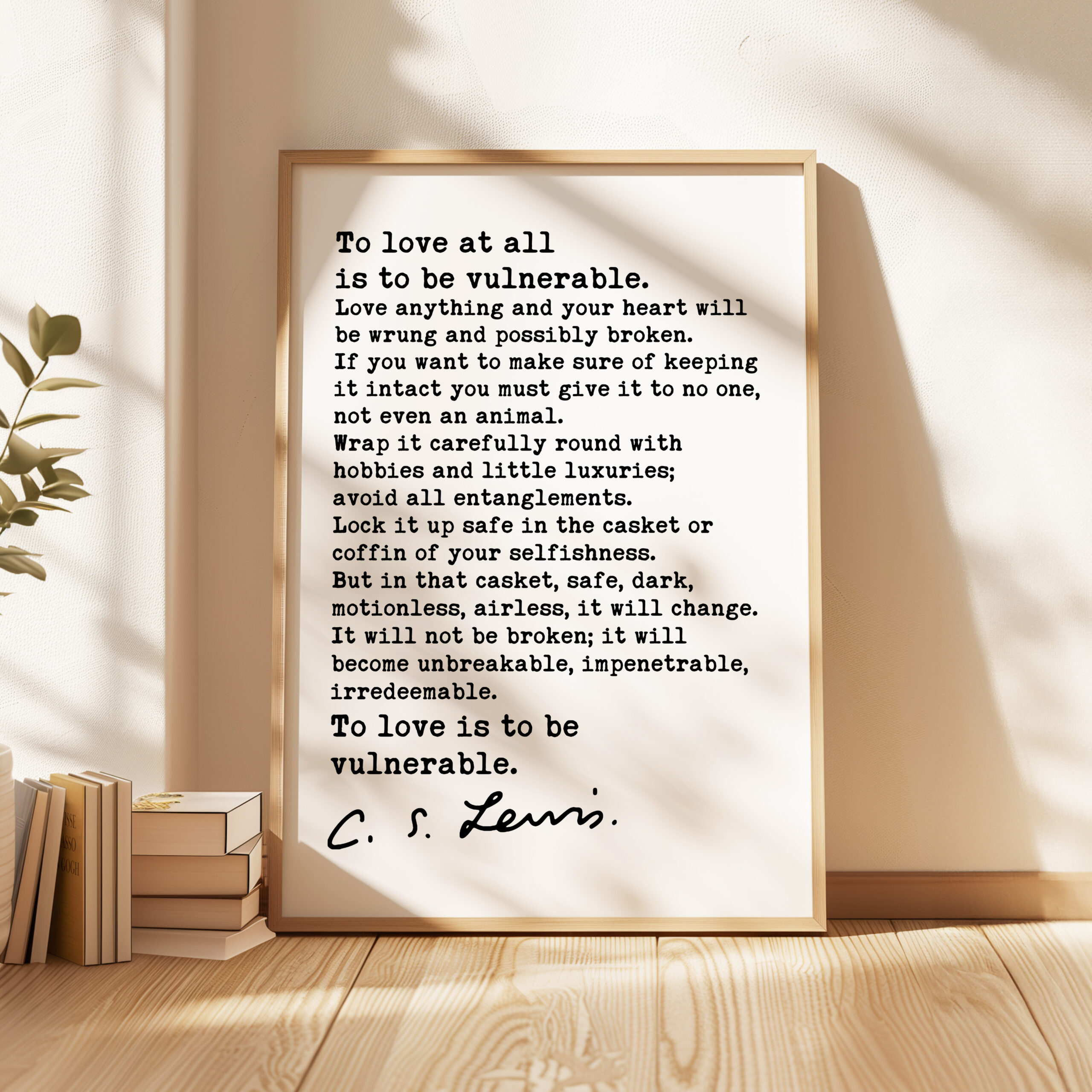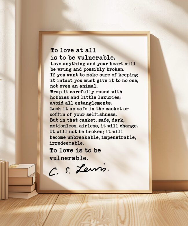 Discover the raw truth of love with this powerful Typography Art Print featuring the poignant words of C.S. Lewis: