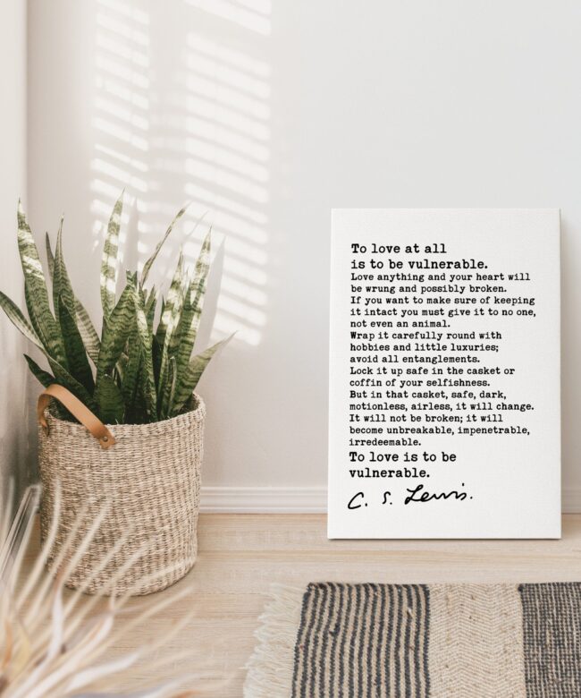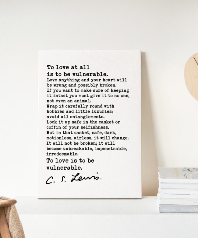 “To love at all is to be vulnerable. Love anything and your heart will be wrung and possibly broken. If you want to make sure of keeping it intact you must give it to no one, not even an animal. Wrap it carefully round with hobbies and little luxuries; avoid all entanglements. Lock it up safe in the casket or coffin of your selfishness. But in that casket, safe, dark, motionless, airless, it will change. It will not be broken; it will become unbreakable, impenetrable, irredeemable. To love is to be vulnerable.”