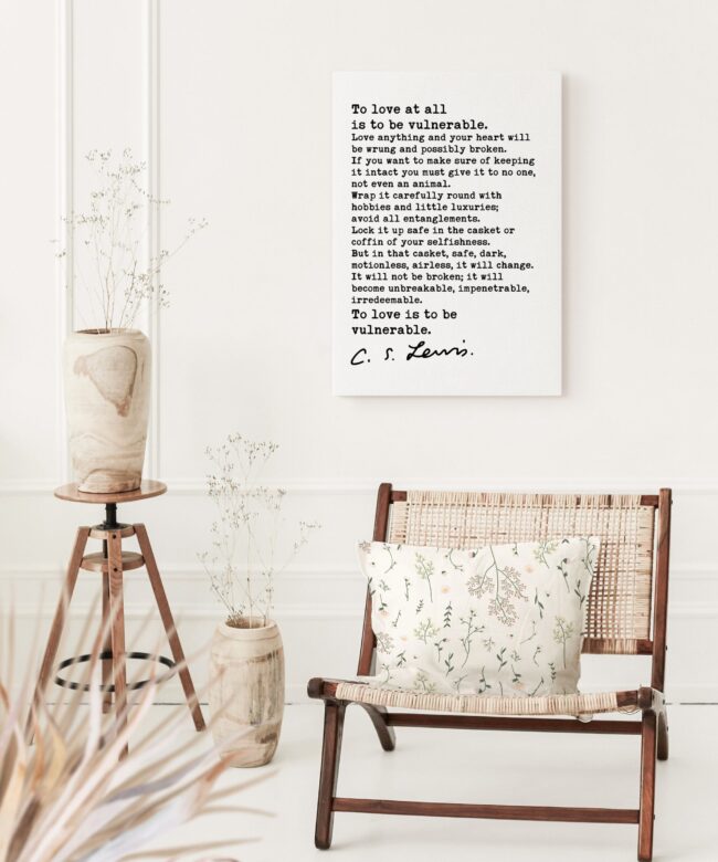 Celebrate the transformative power of love with this captivating typography art print featuring the thought-provoking words of C.S. Lewis: