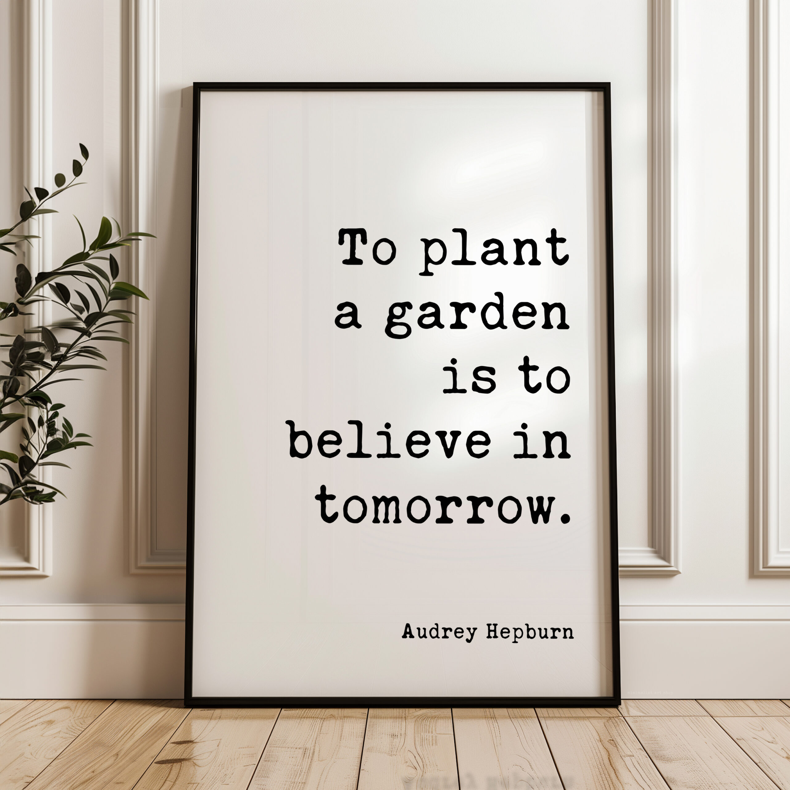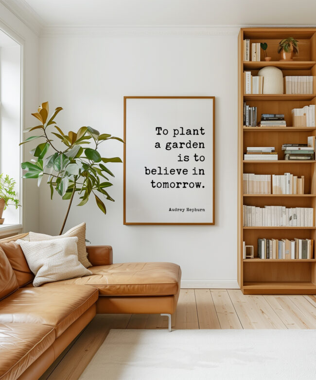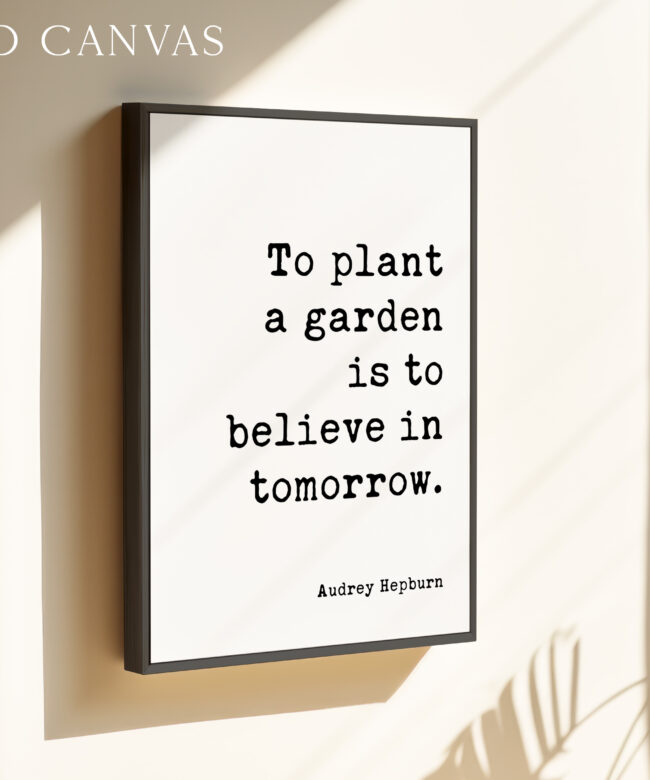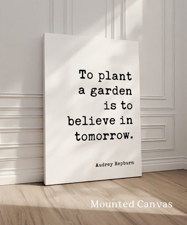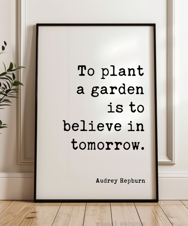 Celebrate hope and the promise of tomorrow with this elegant typography print featuring Audrey Hepburn’s timeless words: “To plant a garden is to believe in tomorrow.” Perfect for kitchens, sunrooms, or your favorite cozy nook, it gently reminds us to nurture beauty and optimism. Makes a thoughtful gift for gardeners, dreamers, or anyone who needs a daily dose of encouragement.
