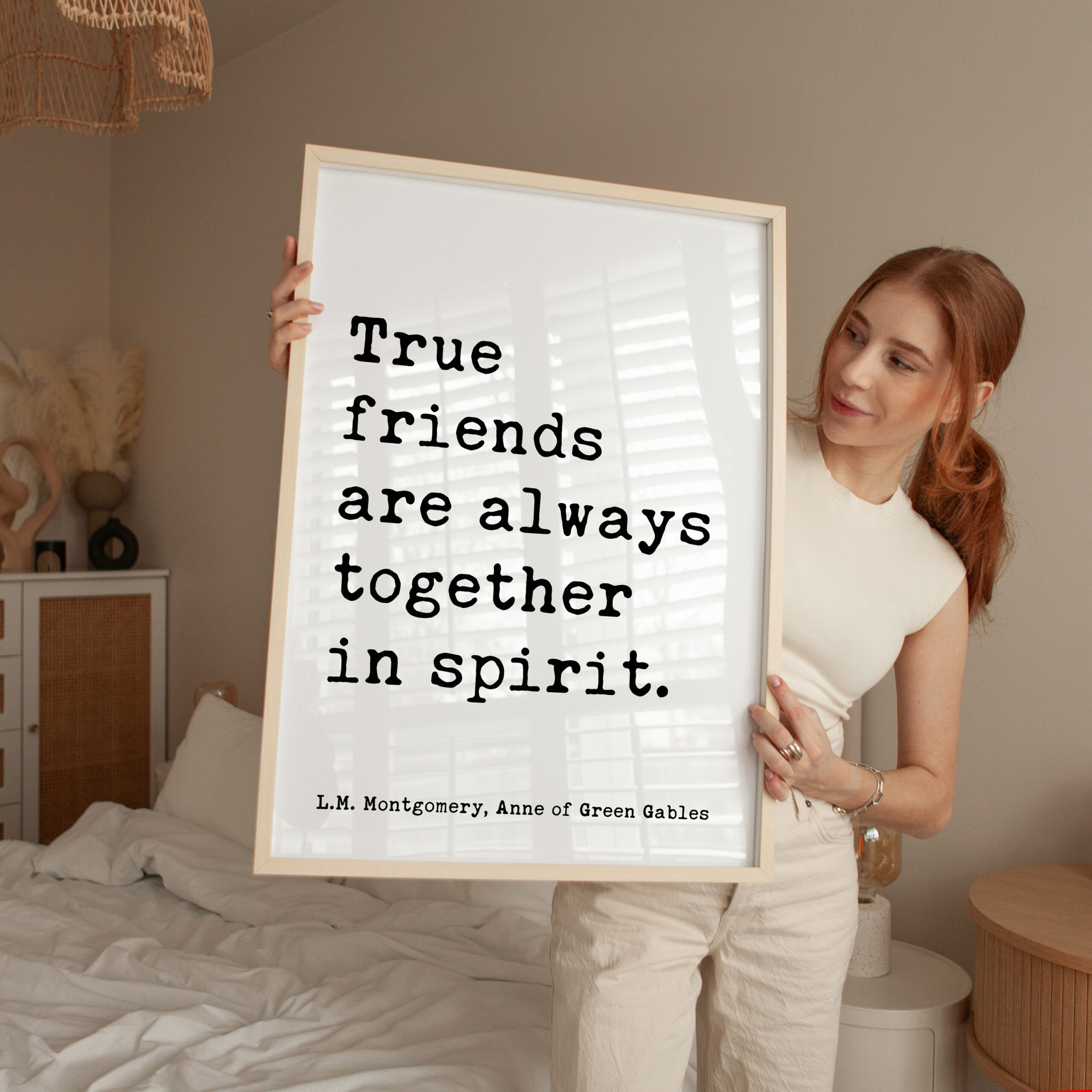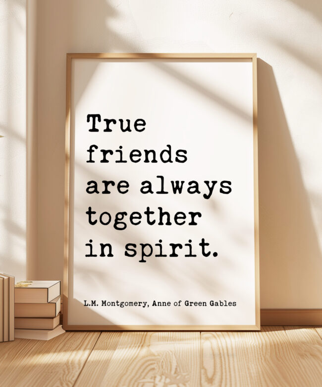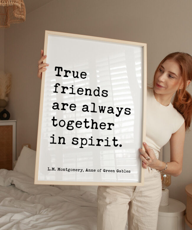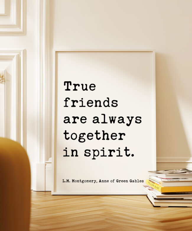 True friends are always together in spirit. L.M. Montgomery Quote, Anne of Green Gables Typography Art Print