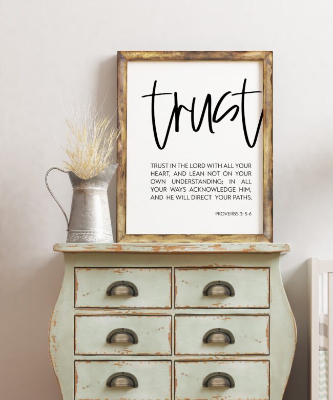Trust In The Lord With All Your Heart Proverbs 3:5-6 Art Print – Faith Quotes – Religious Scripture – Bible Verse Art