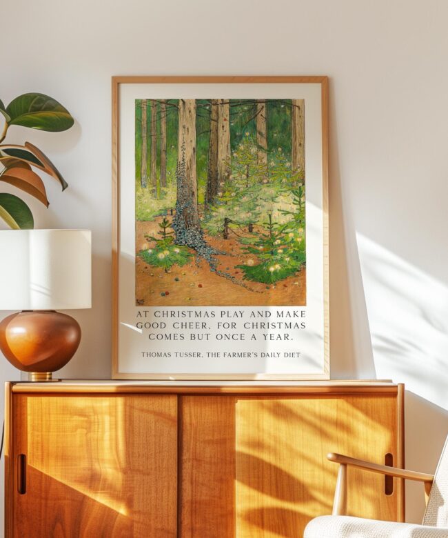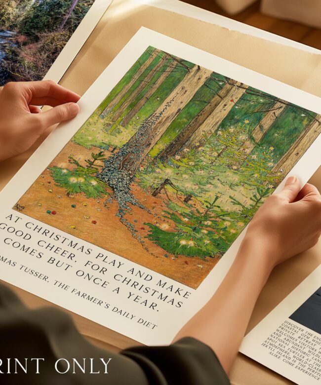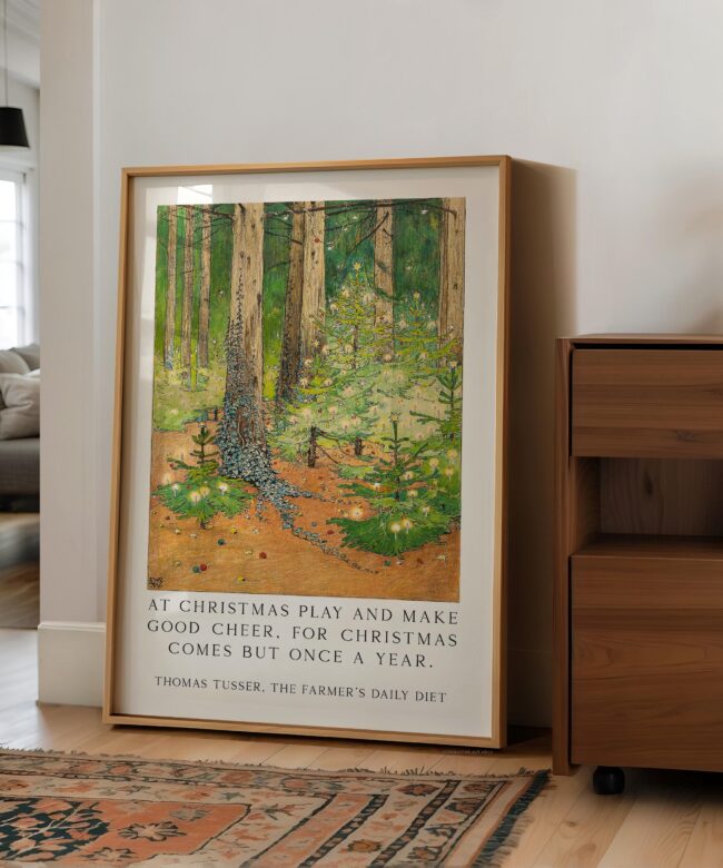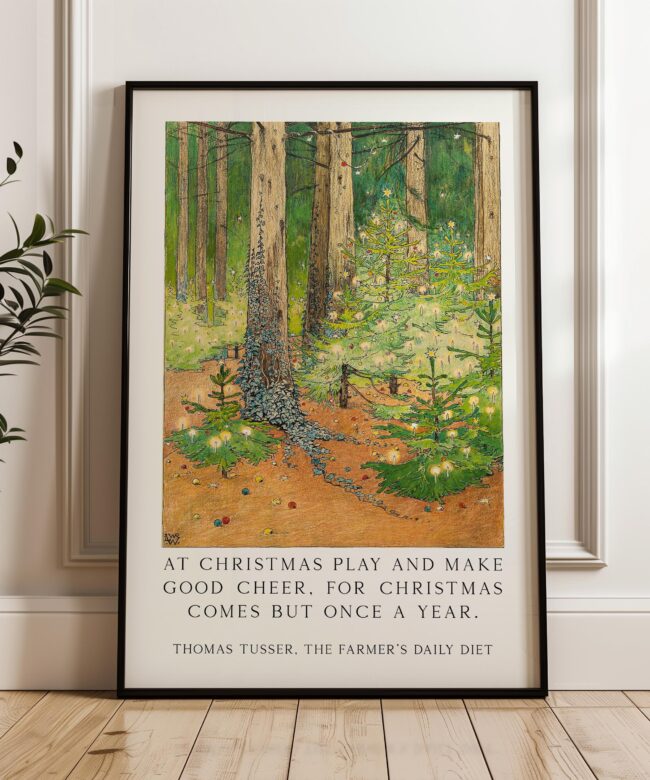 Vintage Art Print – “At Christmas Play and Make Good Cheer” – 1898 Wenckebach Forest Painting