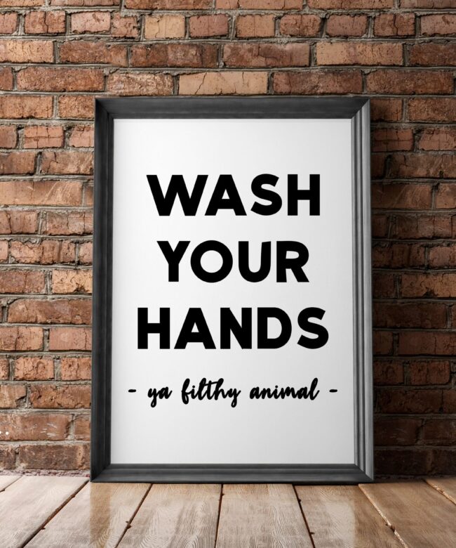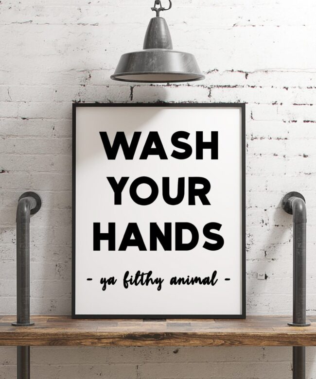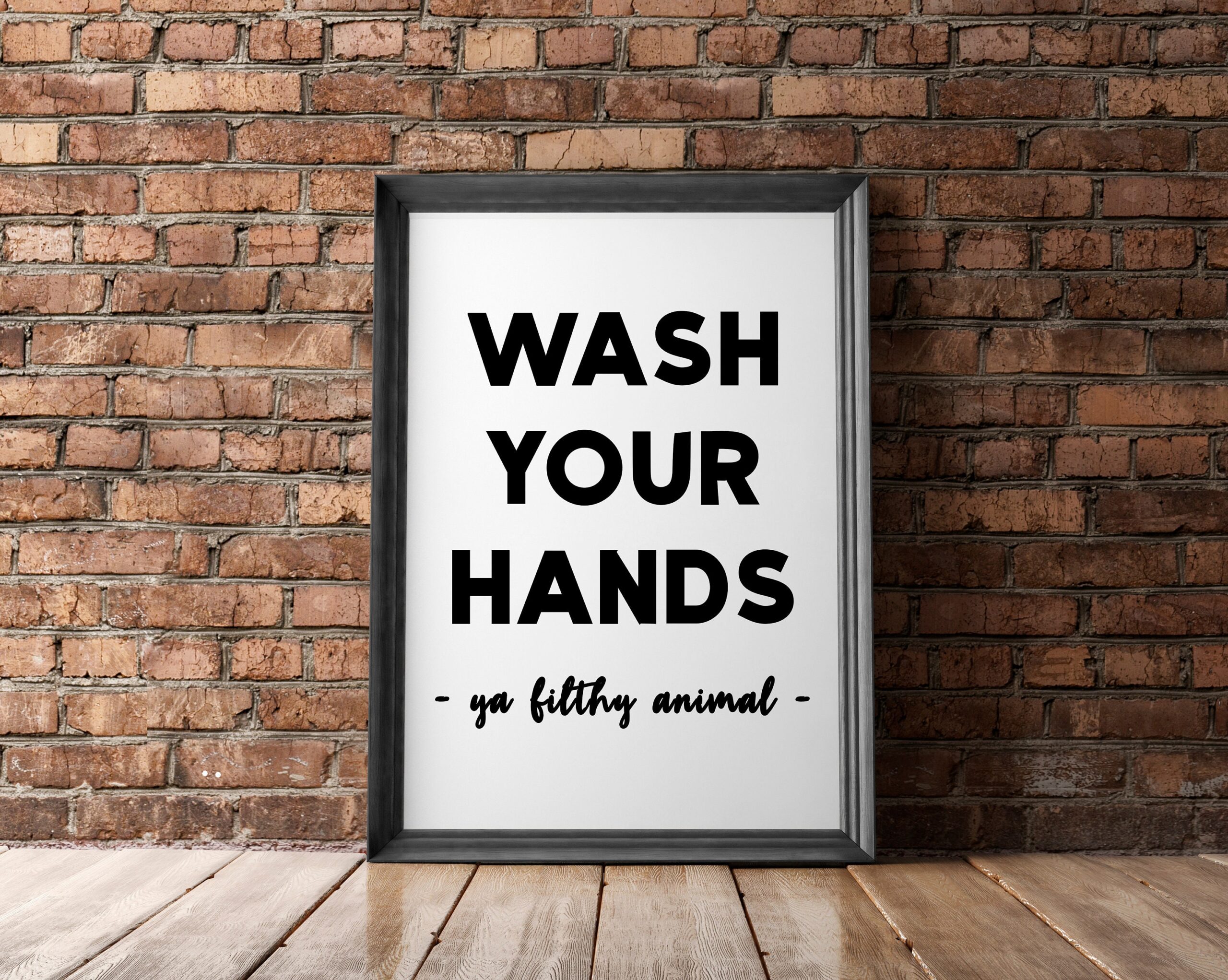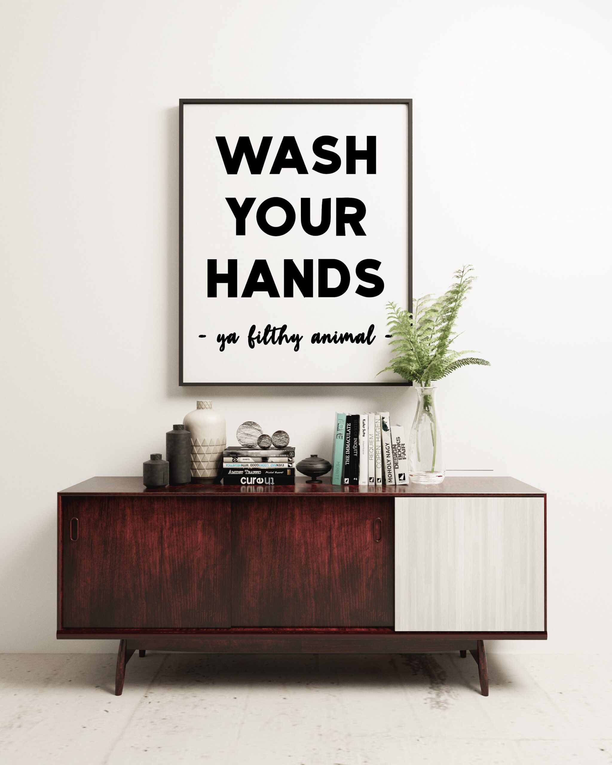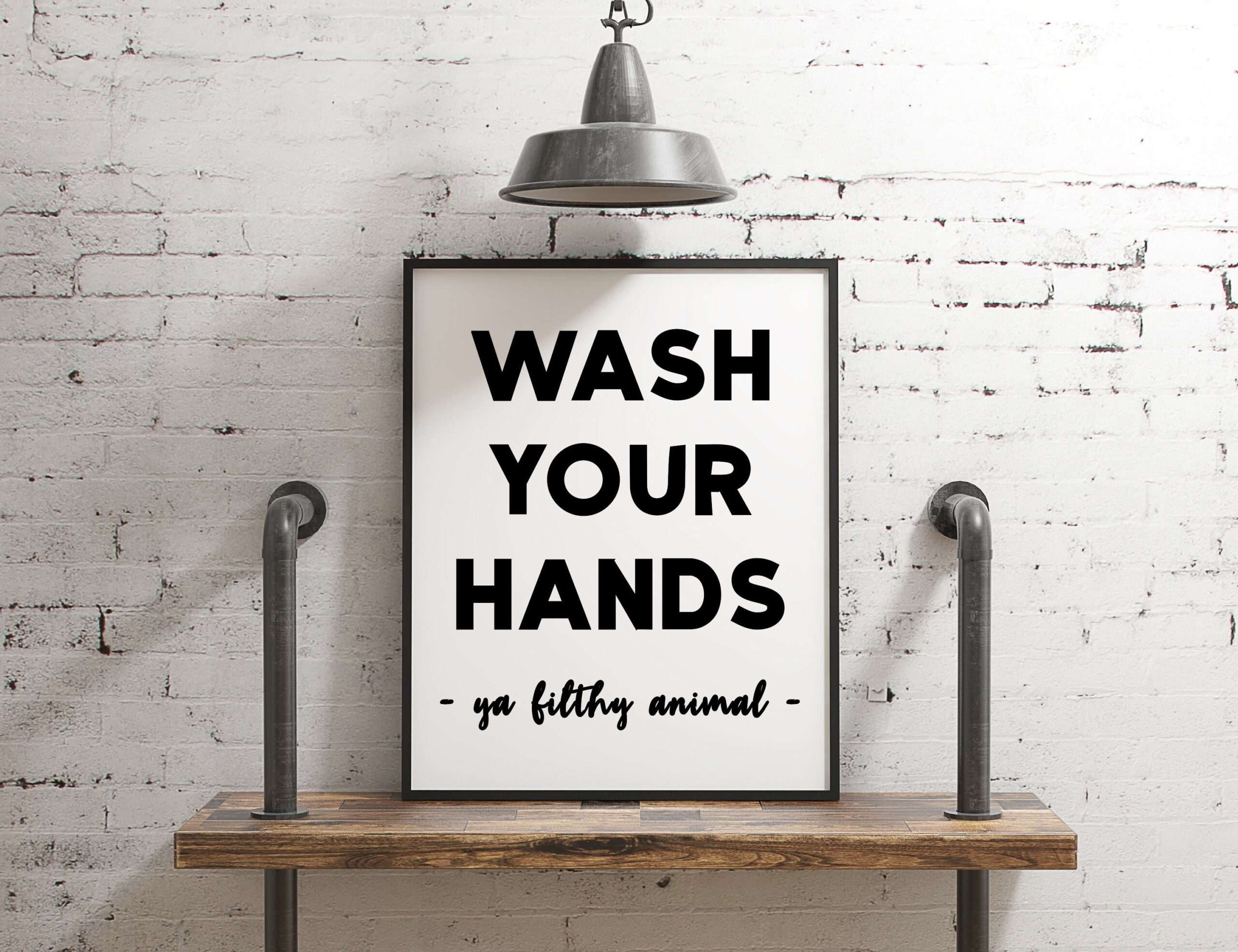 Wash Your Hands Ya Filthy Animal Minimalist Art Print – Bathroom Wall Art – Minimalist Typography Wall Decor – Bathroom Print Art