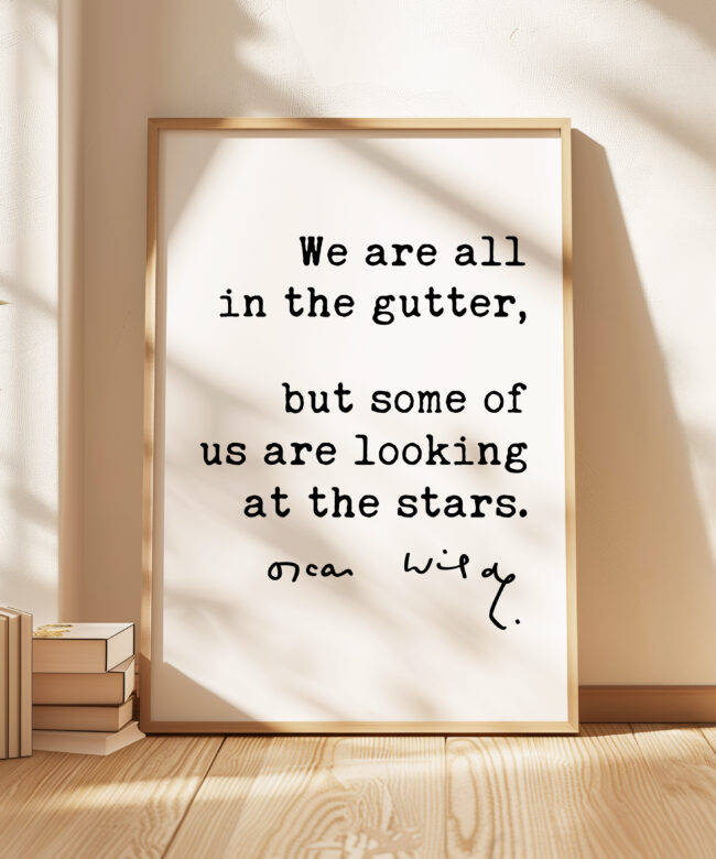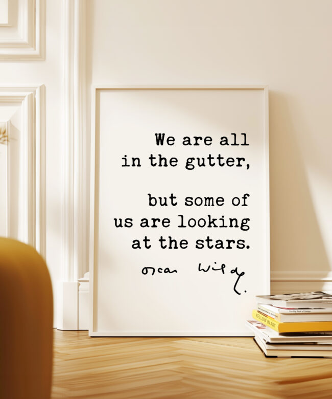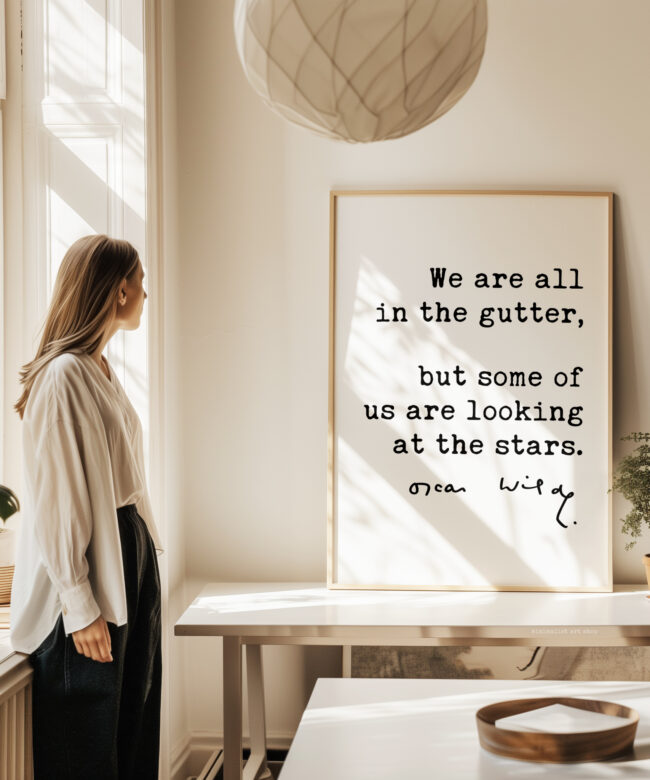 This Oscar Wilde quote art print is a stunning reminder to find beauty and hope no matter where you stand. Designed in a clean, minimalist style, it’s ideal for home libraries, creative studios, or gallery walls. Makes a thoughtful gift for lovers of literature, creatives, or anyone who appreciates the magic of a positive perspective.