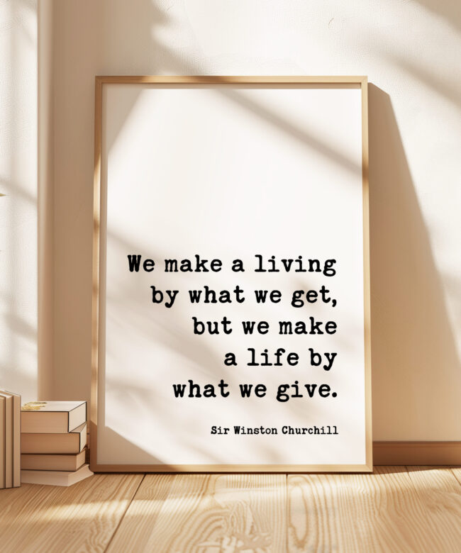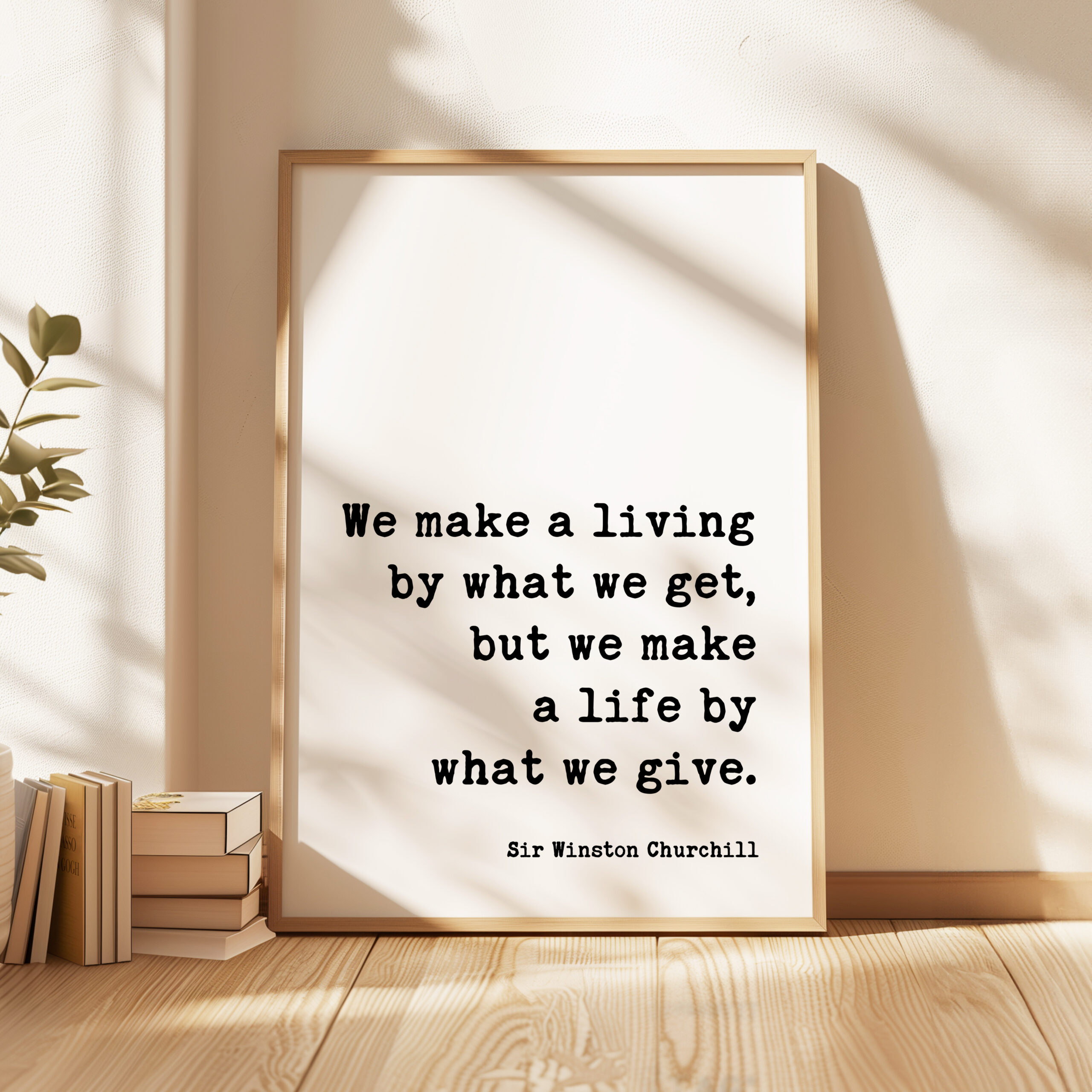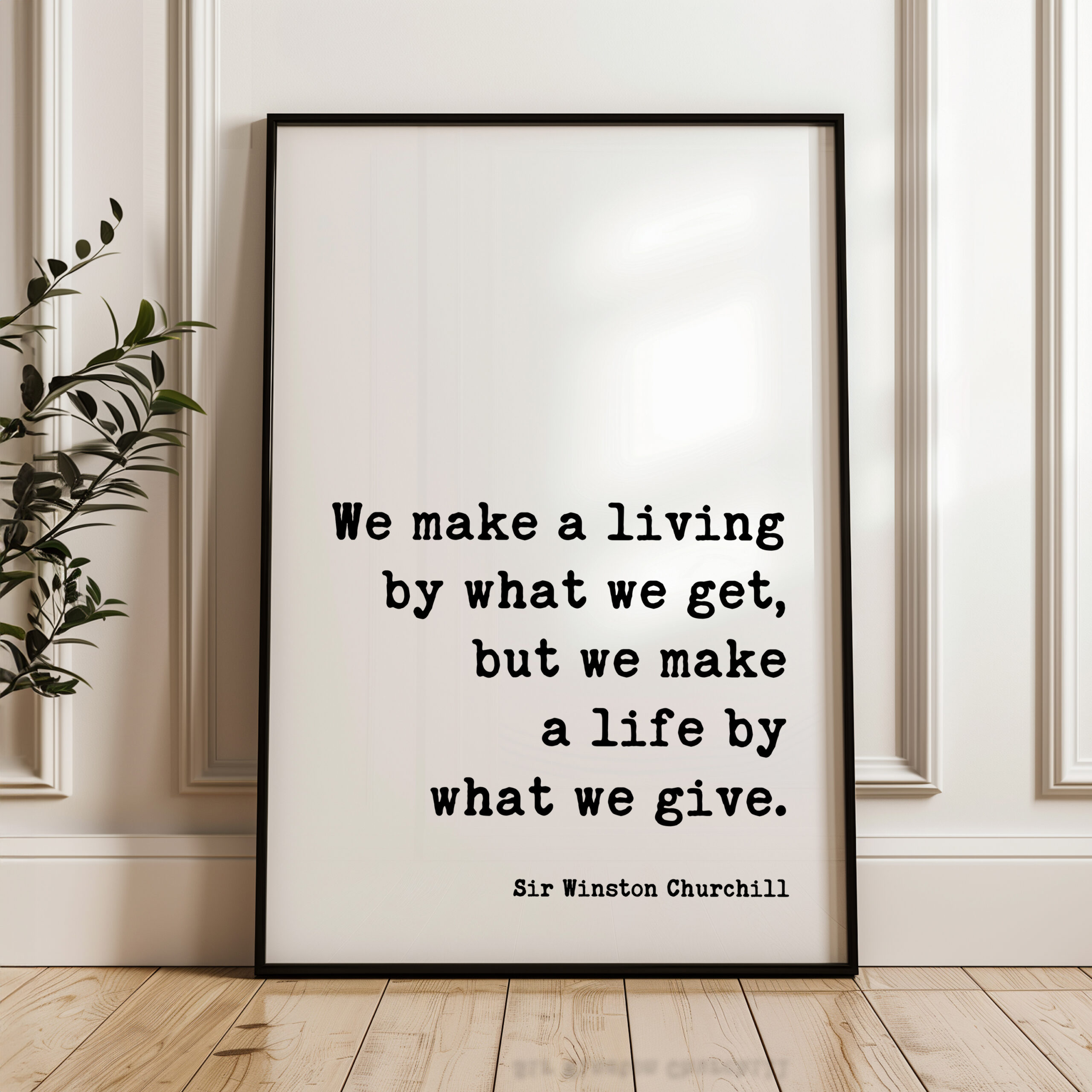 We make a living by what we get, but we make a life by what we give. – Sir Winston Churchill Quote Typography Art Print