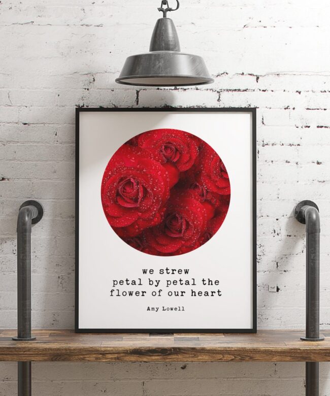 We strew petal by petal the flower of our heart – Amy Lowell, Petals Art Print, Typography Print, Poem Art, Wedding Poems, Love Poems Poetry