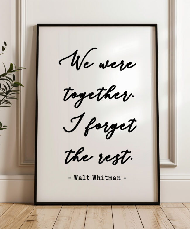 Celebrate love in its purest form with this stunning typography print featuring Walt Whitman’s heartfelt words: