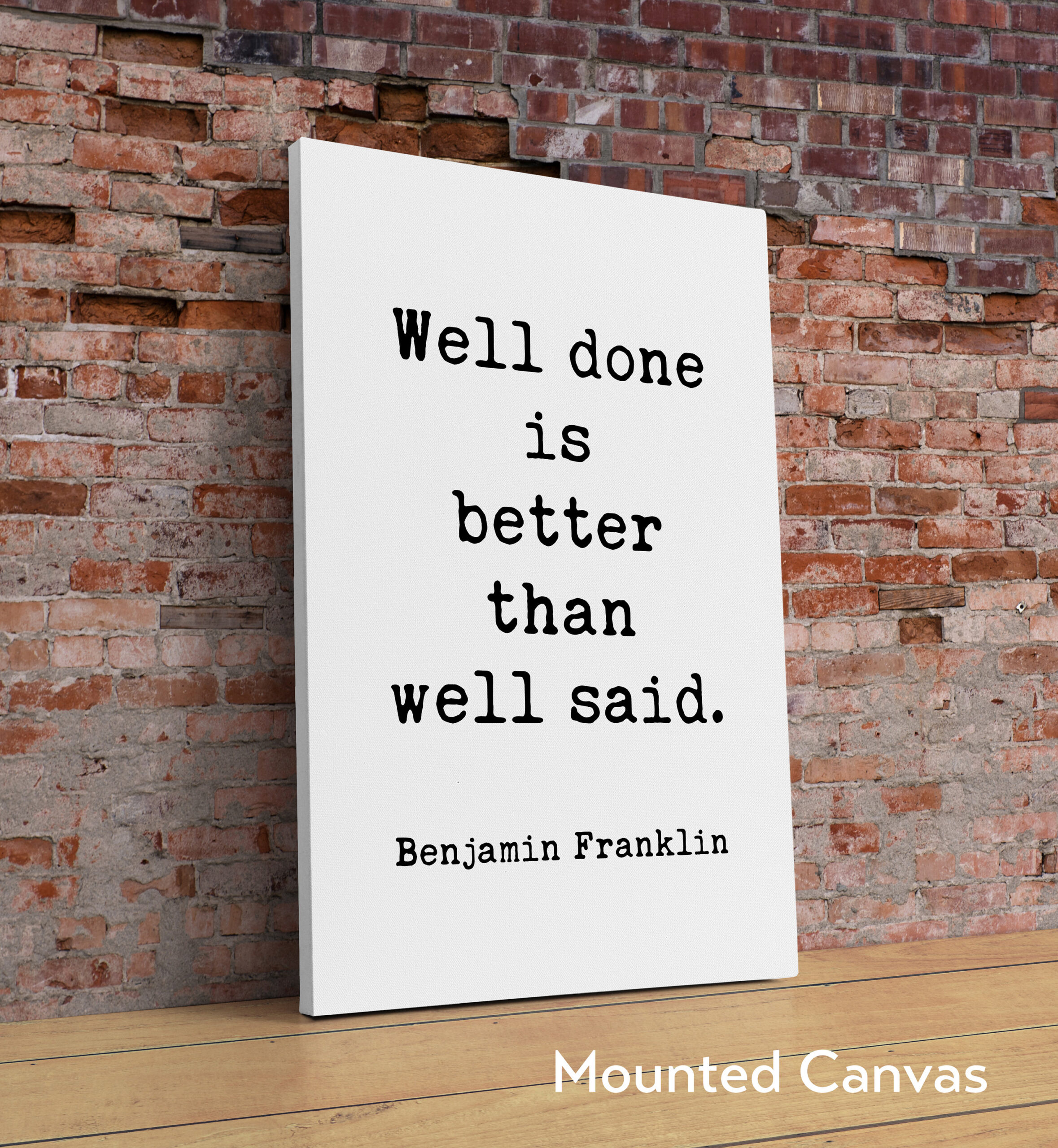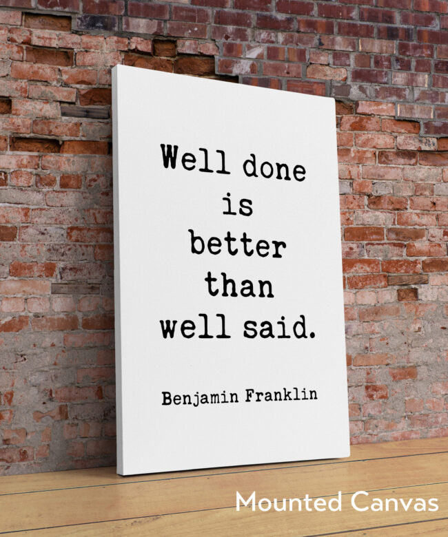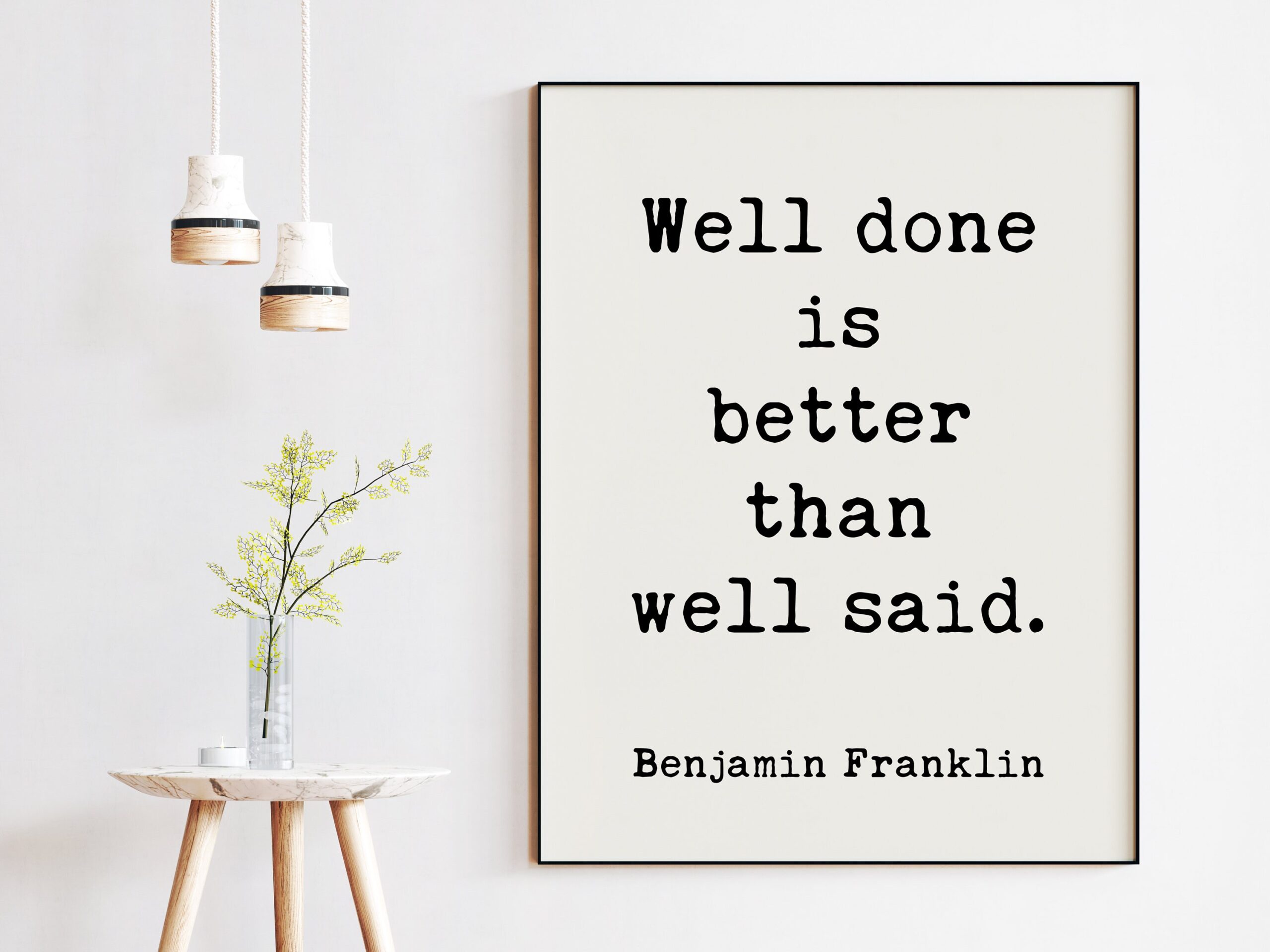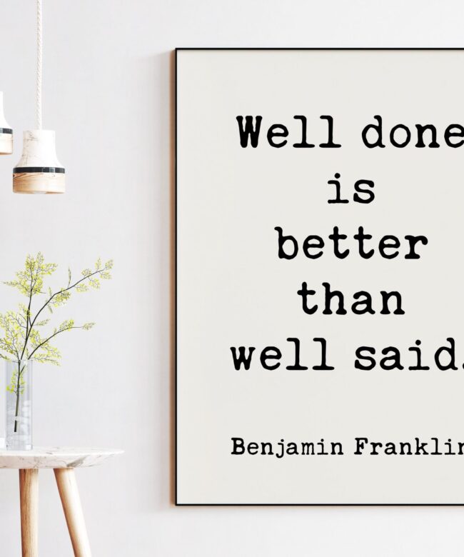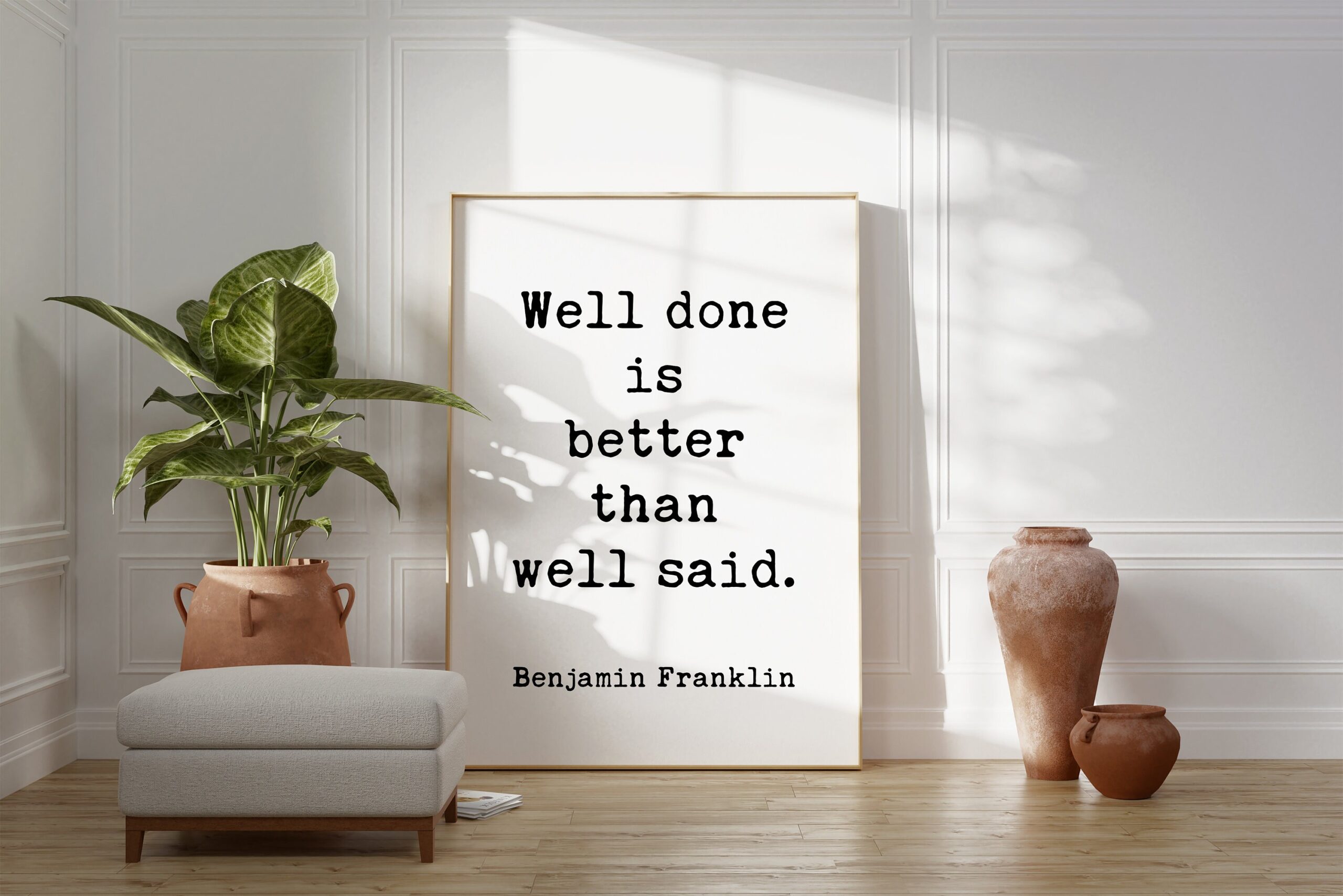 Introducing our “Well done is better than well said” Typography Art Print, inspired by the timeless wisdom of Benjamin Franklin. This captivating piece combines the power of words with the beauty of typography, creating a visual masterpiece that will ignite your motivation and inspire action.