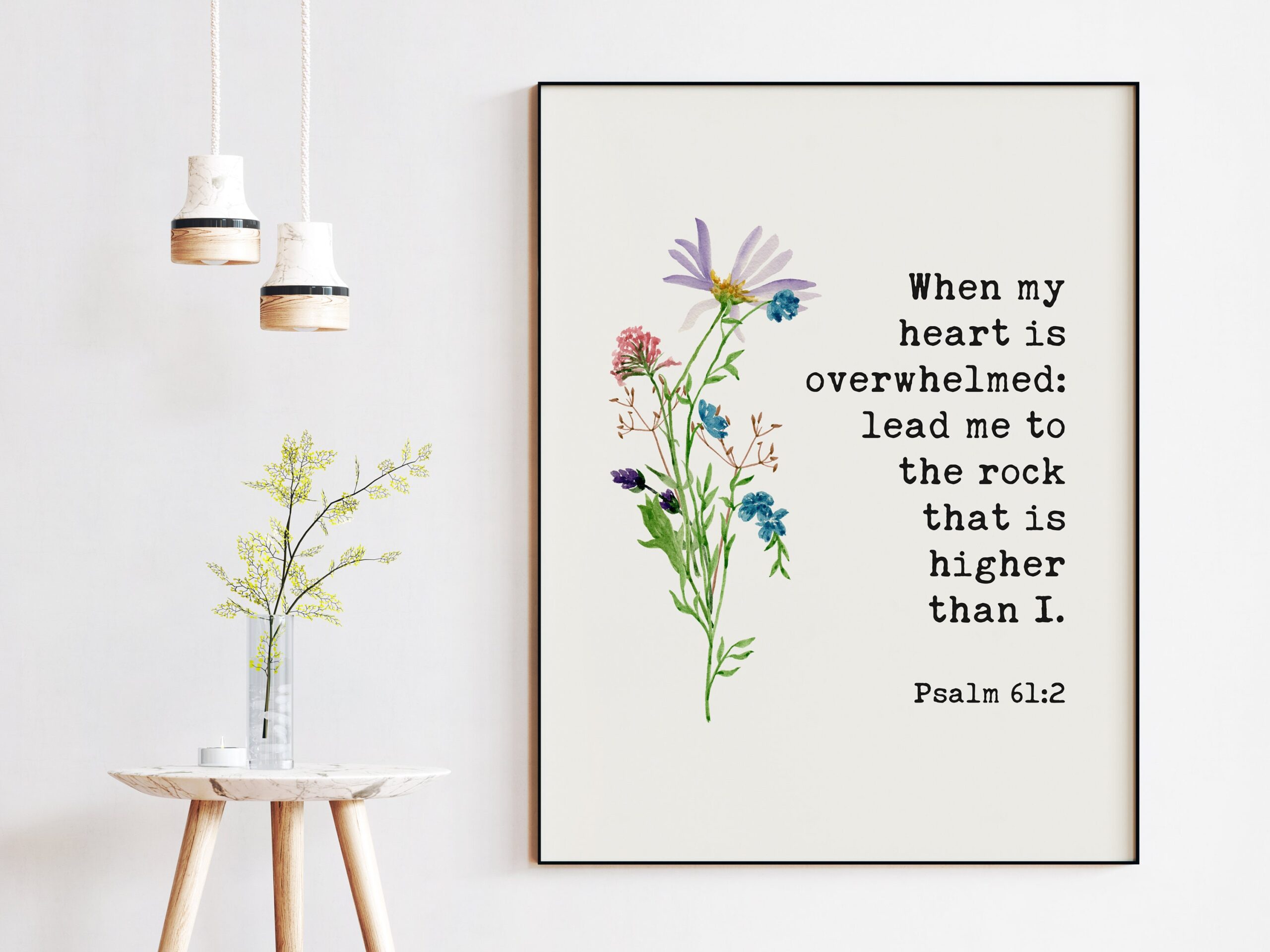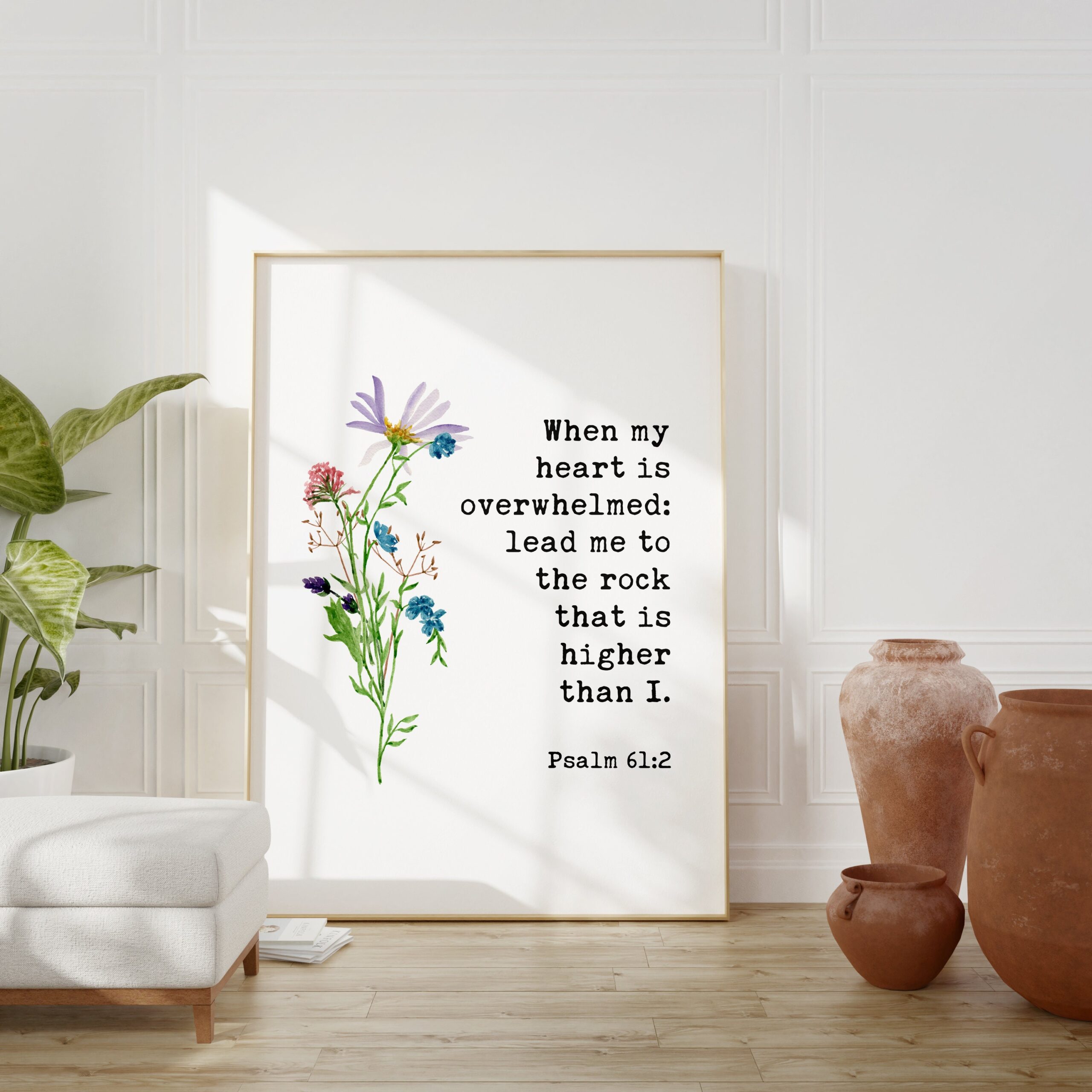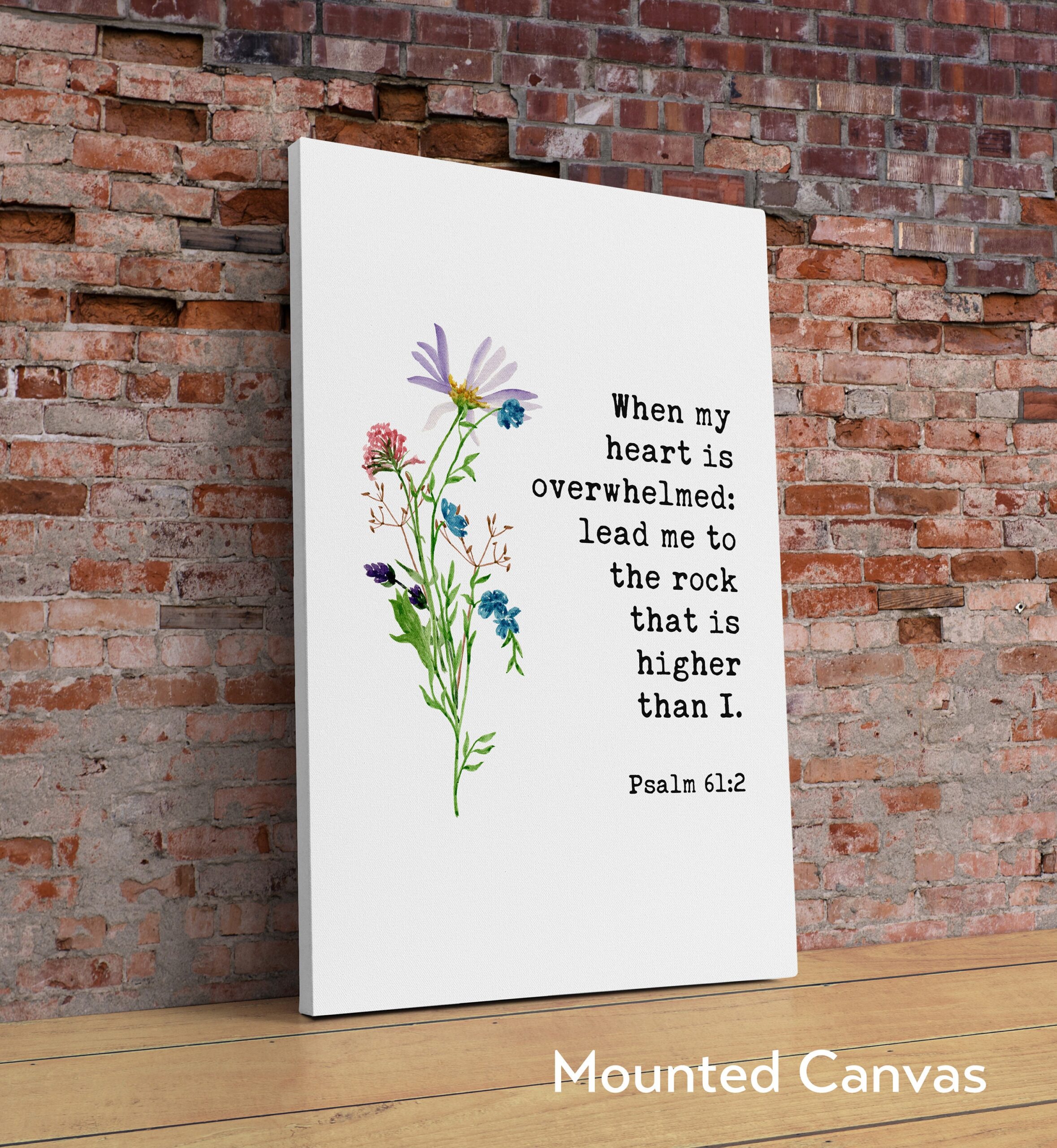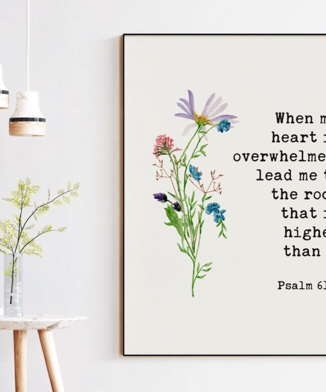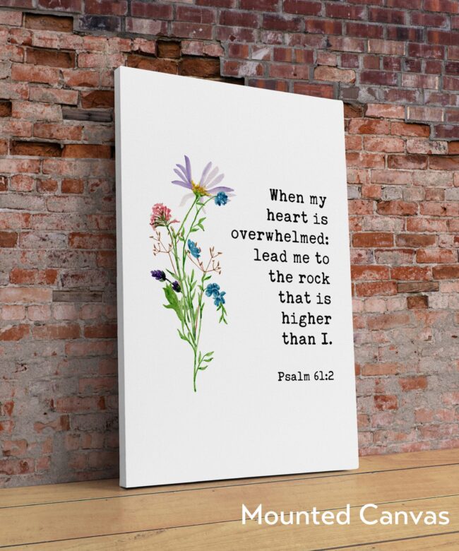 When My Heart is Overwhelmed Lead Me to the Rock that is Higher Than I Psalm 61:2 – Bible Verse – Christian – Scripture – Watercolor Flowers