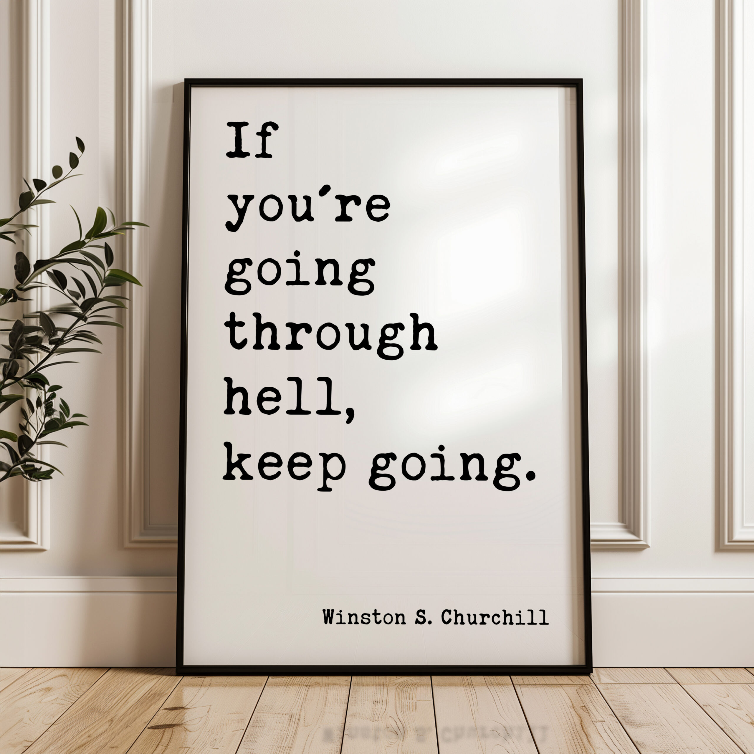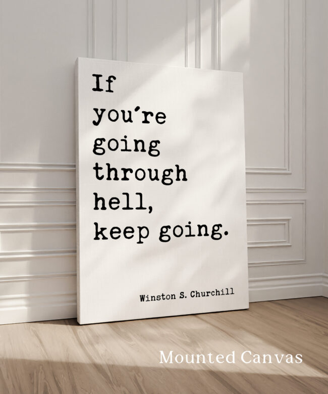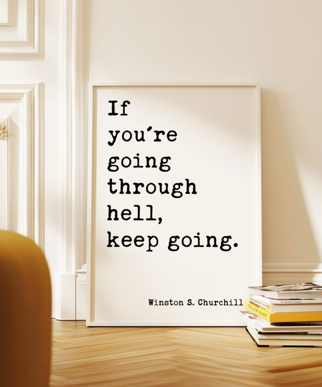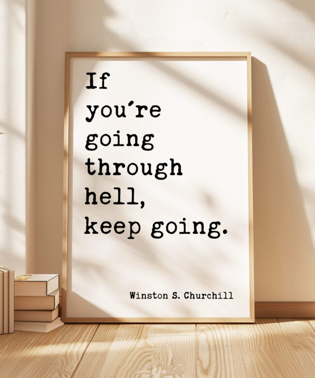Inspired by Winston S. Churchill’s powerful words, this art print serves as a daily reminder to persevere through life’s challenges. “If you’re going through hell, keep going” is a quote that embodies resilience and the strength to keep moving forward, no matter the obstacles. With its simple yet profound message, this print is perfect for anyone who needs an extra dose of motivation or strength during tough times. A timeless addition to any office, living room, or personal space.