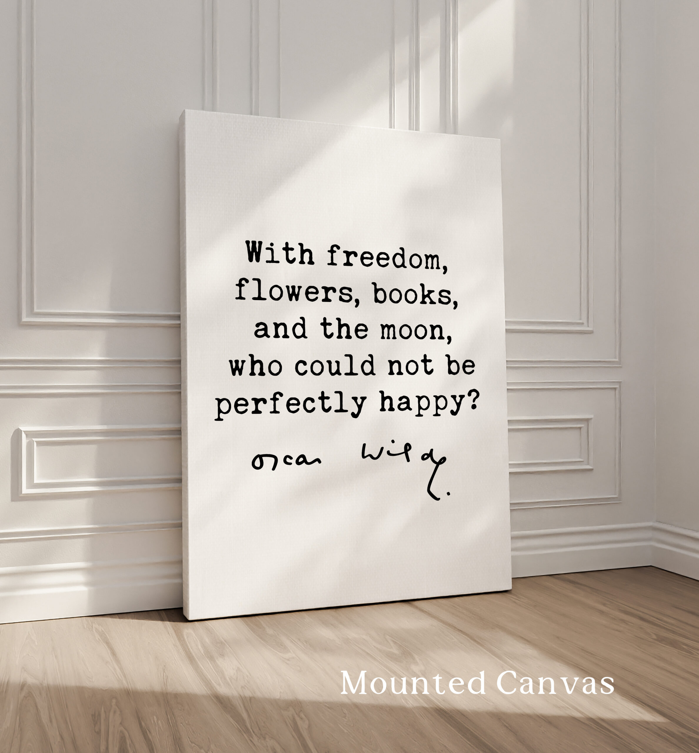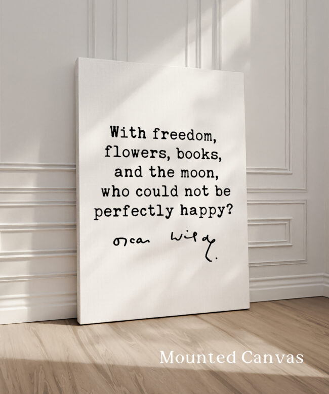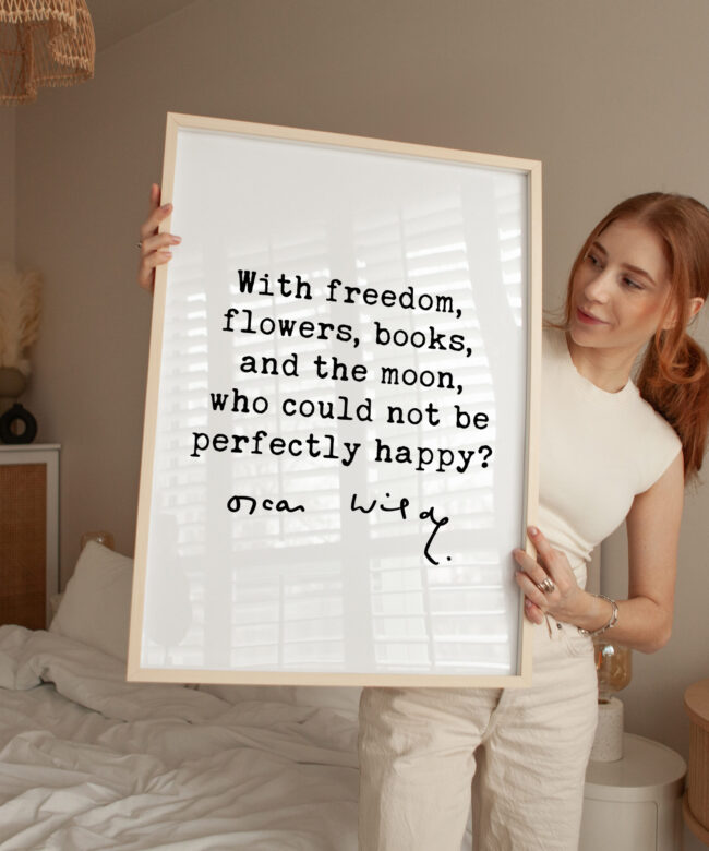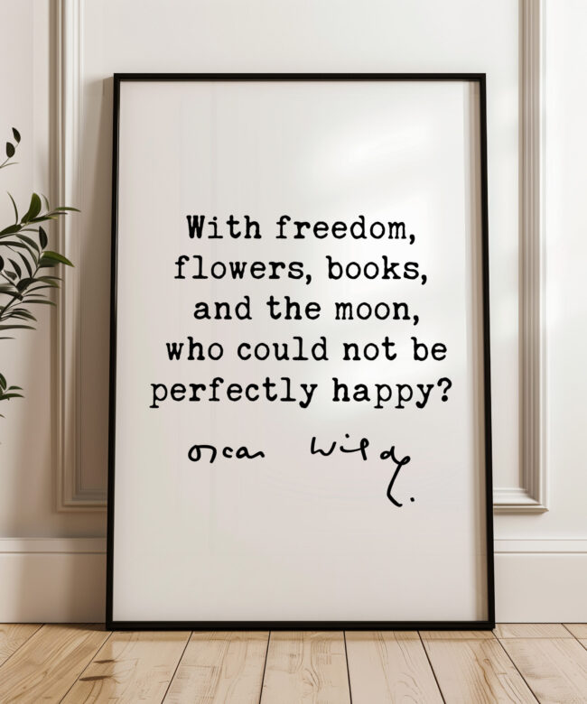 “With freedom, flowers, books, and the moon, who could not be perfectly happy?” – Oscar Wilde. This elegant typography print serves as a gentle reminder that happiness can be found in life’s simplest pleasures. Whether you love literature, nature, or quiet nights under the moon, this minimalist design makes the perfect addition to your home, office, or reading nook.