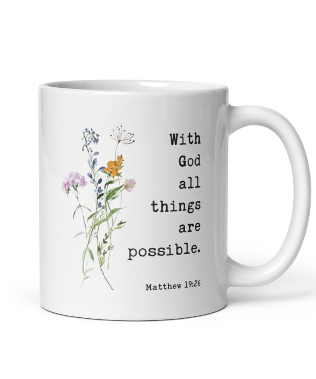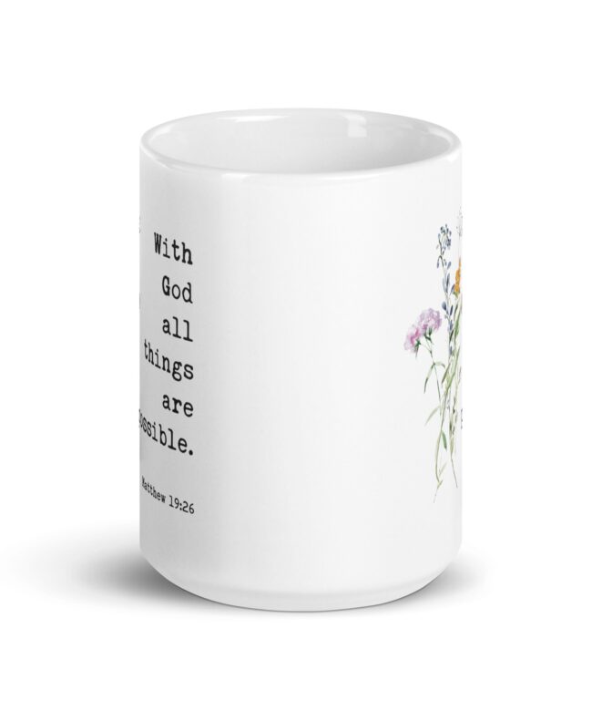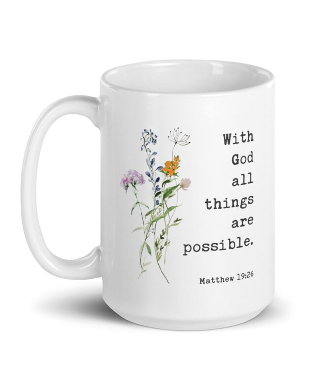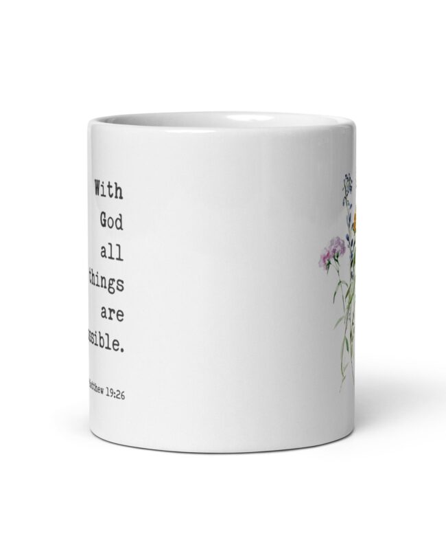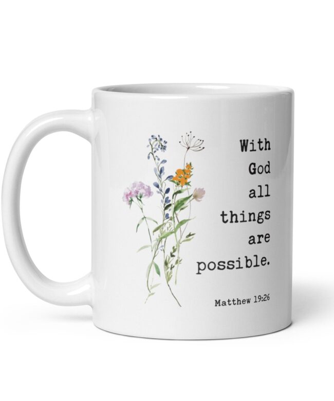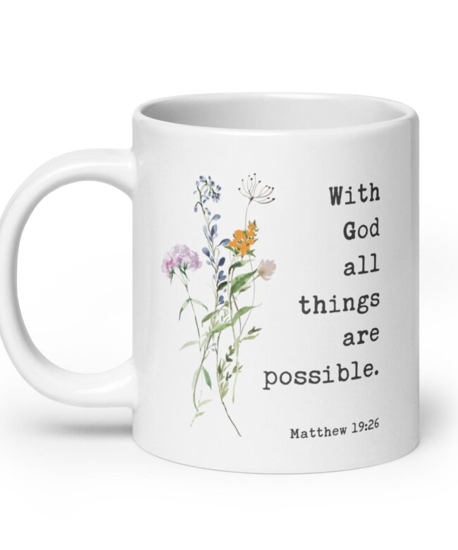 With God All Things Are Possible Matthew 19:26 Coffee Tea Mug with Wildflowers, Scripture, Bible Verse