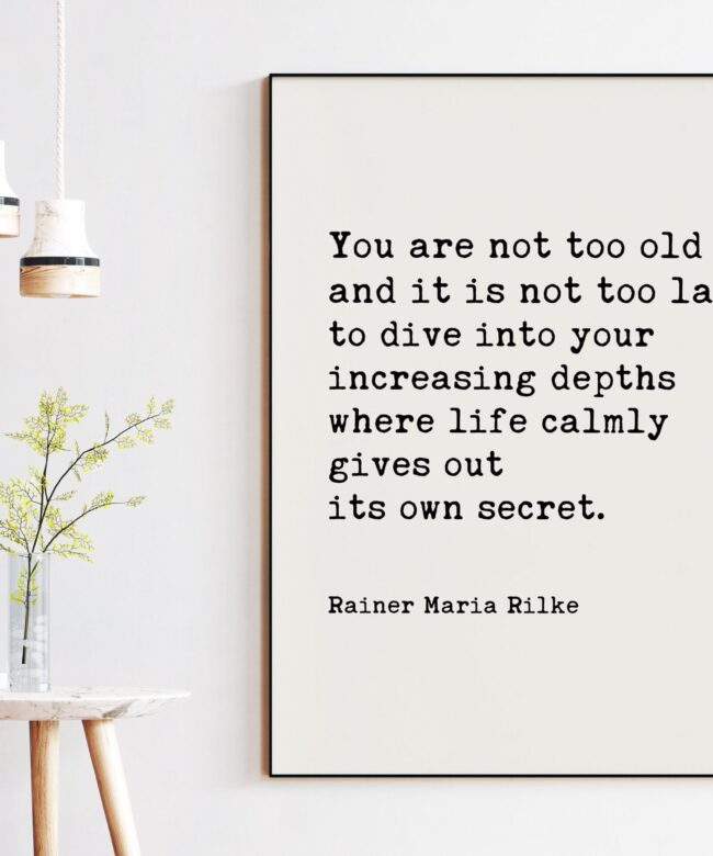 You are not too old and it is not too late … its own secret. – Rainer Maria Rilke Quote Typography Art Print – Inspirational – Adventure