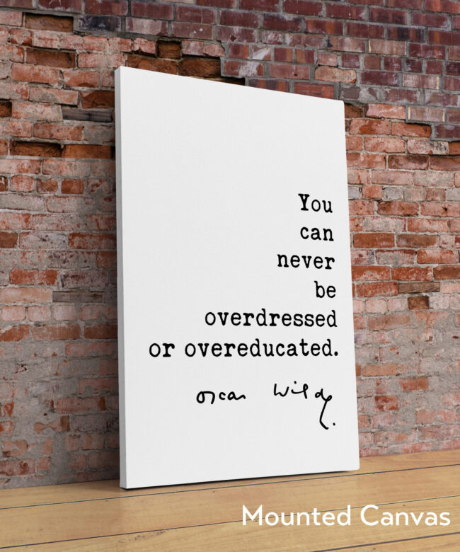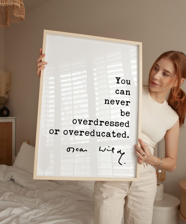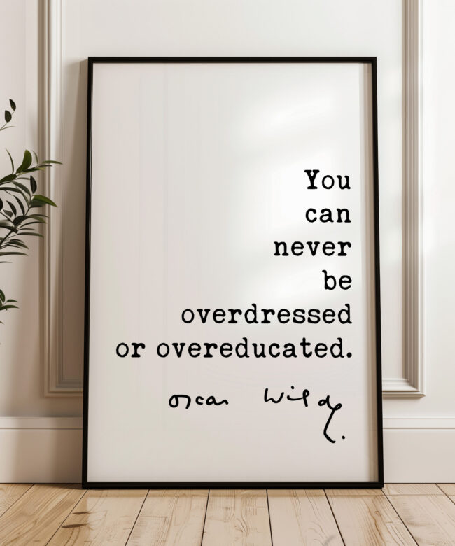 Celebrate style and intellect with this elegant Typography Art Print featuring the iconic Oscar Wilde quote: “You can never be overdressed or overeducated.” This timeless statement, with its blend of wit and wisdom, speaks to those who appreciate both fashion and knowledge.