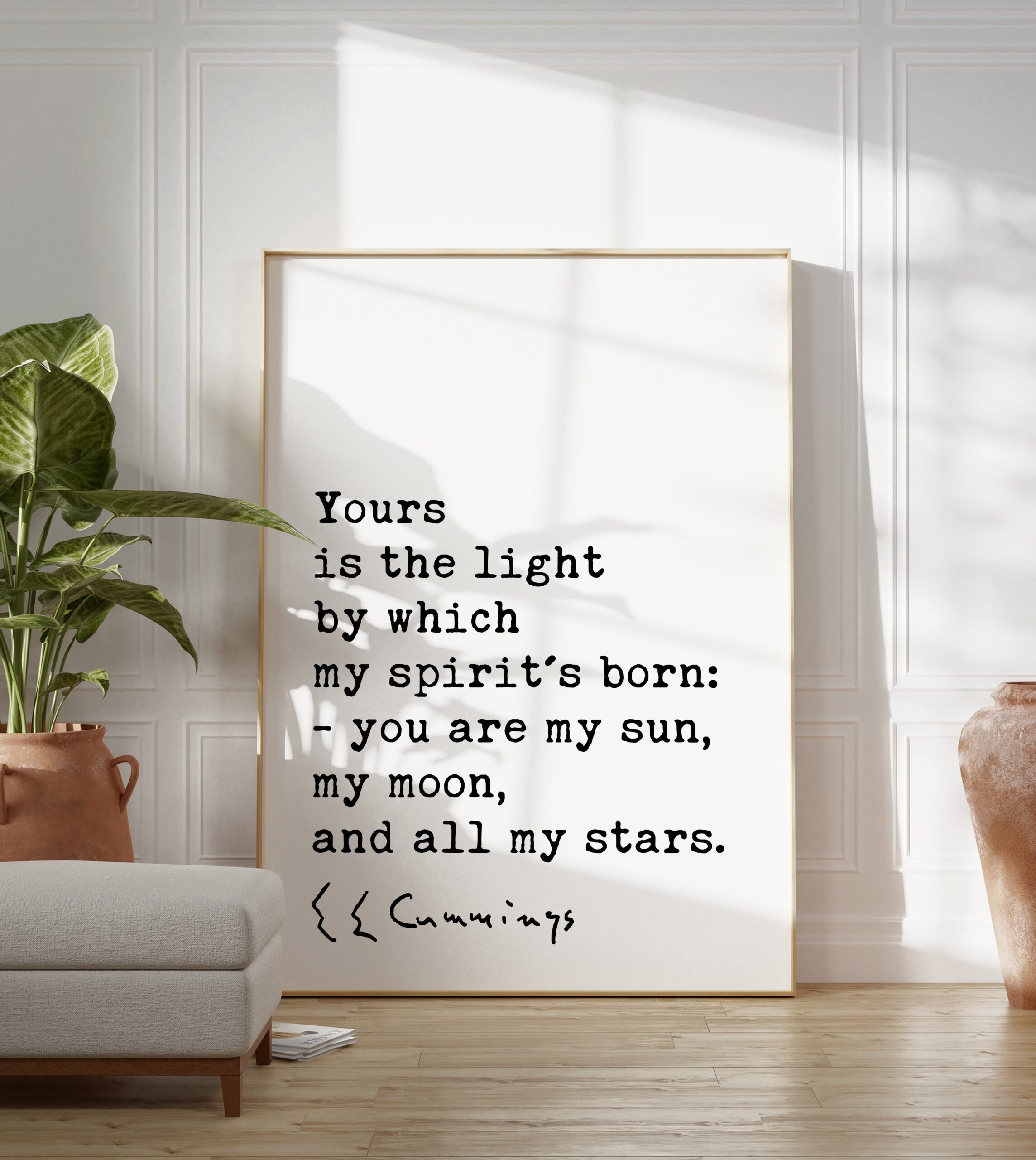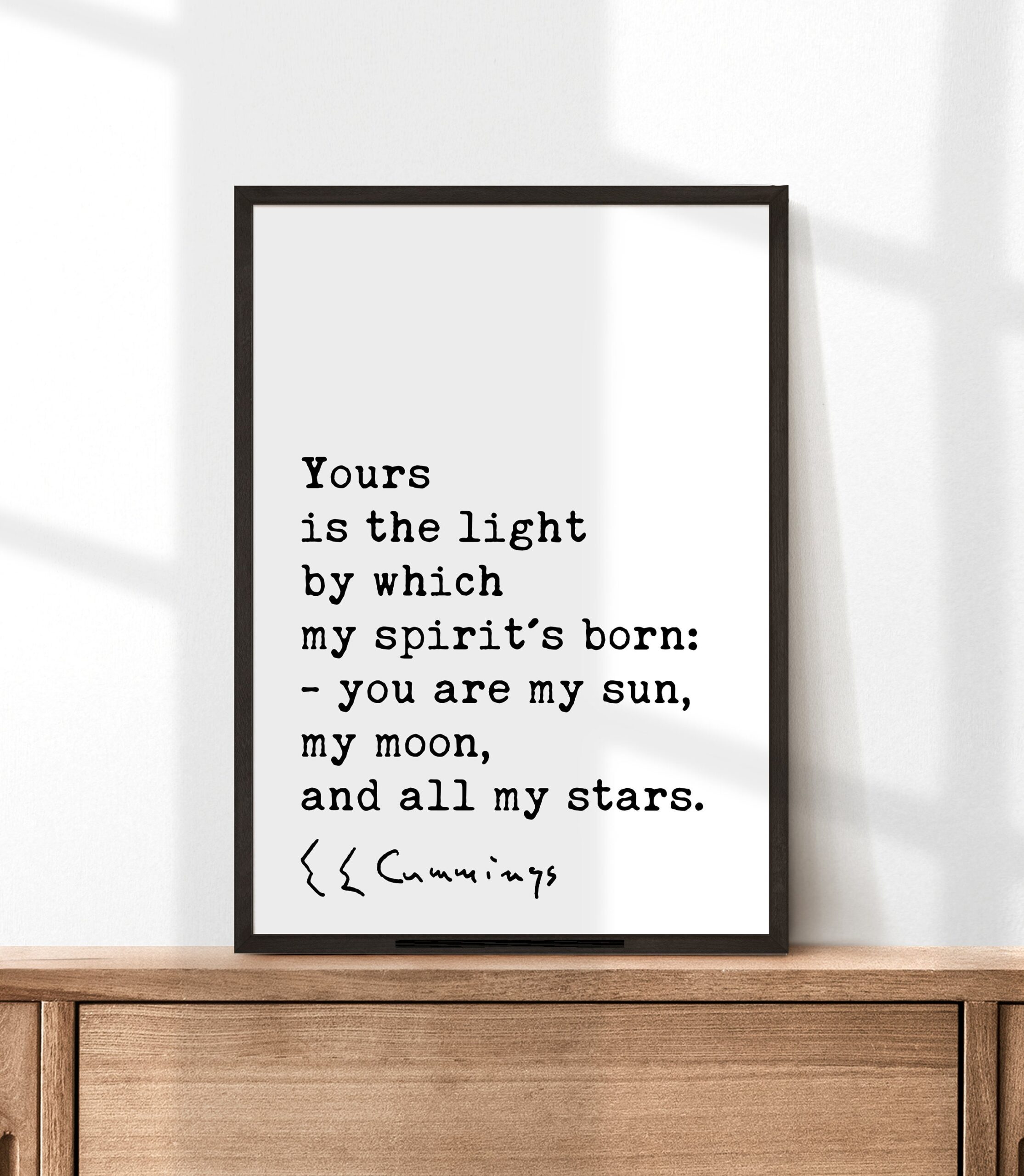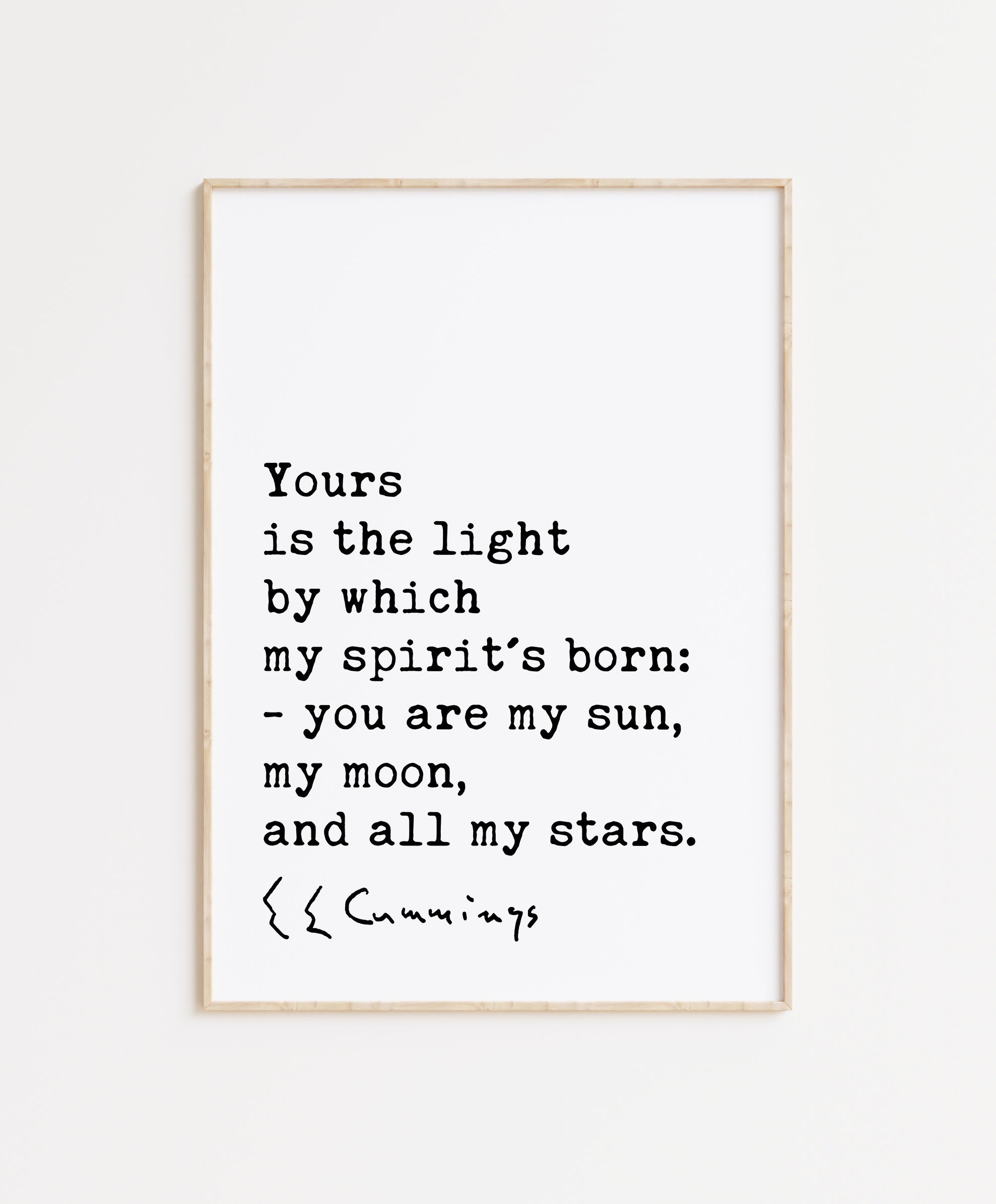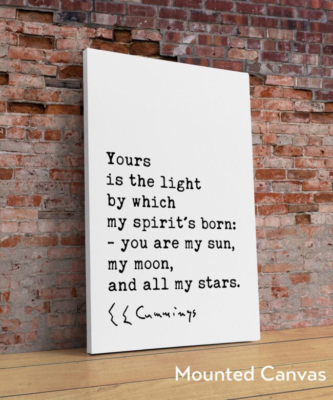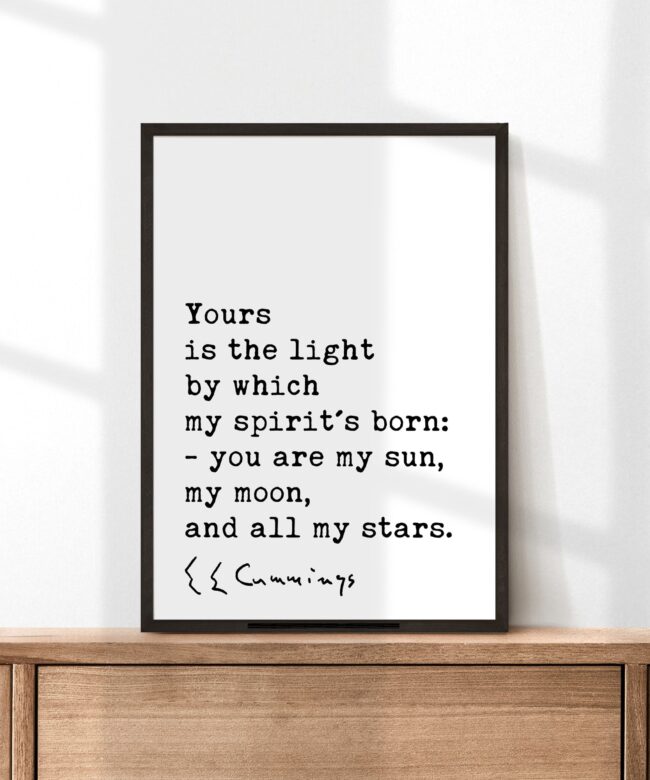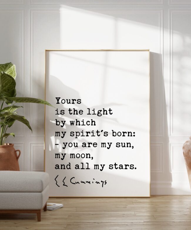 More than just words on a wall, this piece is a powerful declaration of love and appreciation. The minimalist design allows the quote to shine, emphasizing the intimate and emotional language of Cummings’ poetry. His words create a universe for two, where the beloved becomes the source of light, guidance, and endless wonder.