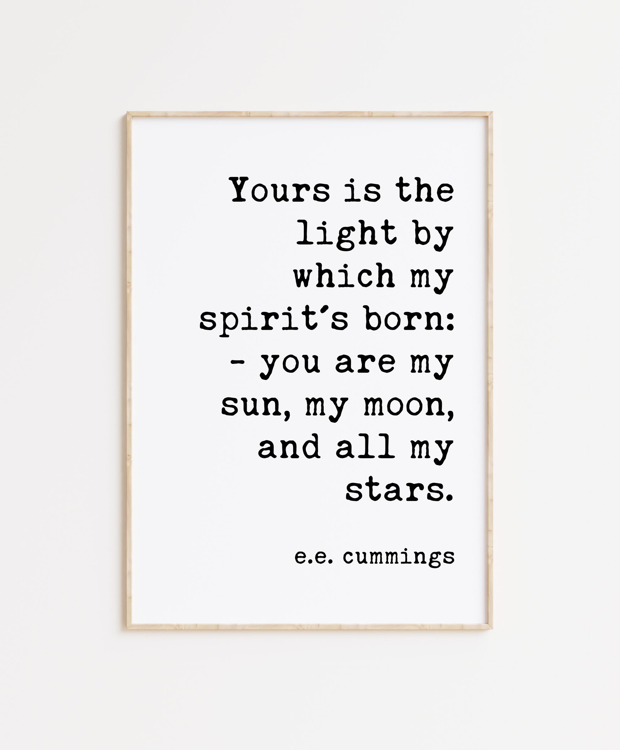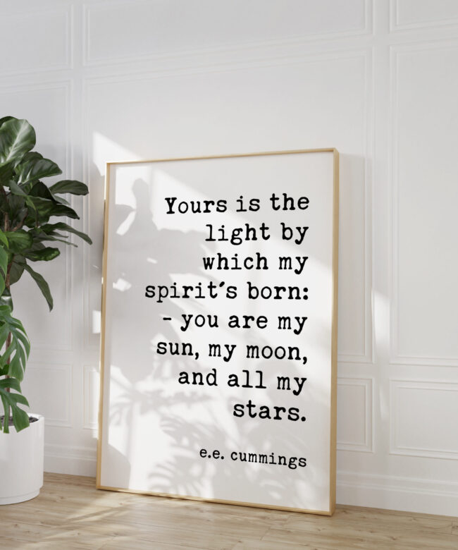 Celebrate the radiant love that lights your life with this captivating typography art print featuring the romantic verse by E.E. Cummings: