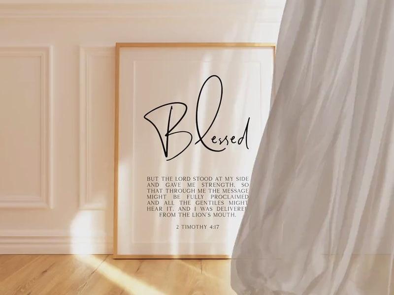 2 Timothy 4:17 – Blessed – But the Lord stood at my side and gave me strength. Typography Art Print - Scripture - Christian - Bible Verse