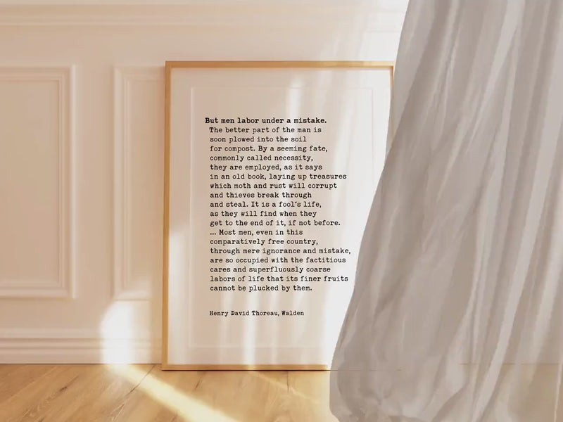 Henry David Thoreau Quote - But men labor under a mistake. The better part of the man... Typography Art Print - Walden - Economy - 1854