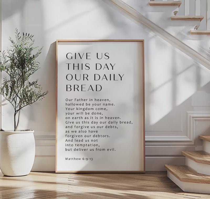 Infuse your space with serenity and faith through this minimalist Christian wall art, thoughtfully designed to inspire daily reflection. Featuring the timeless words of the Lord’s Prayer, this inspirational art piece gently reminds you of gratitude, forgiveness, and trust. Ideal for enhancing a pastor’s church office, nursery school, or any home seeking peaceful, meaningful decor.